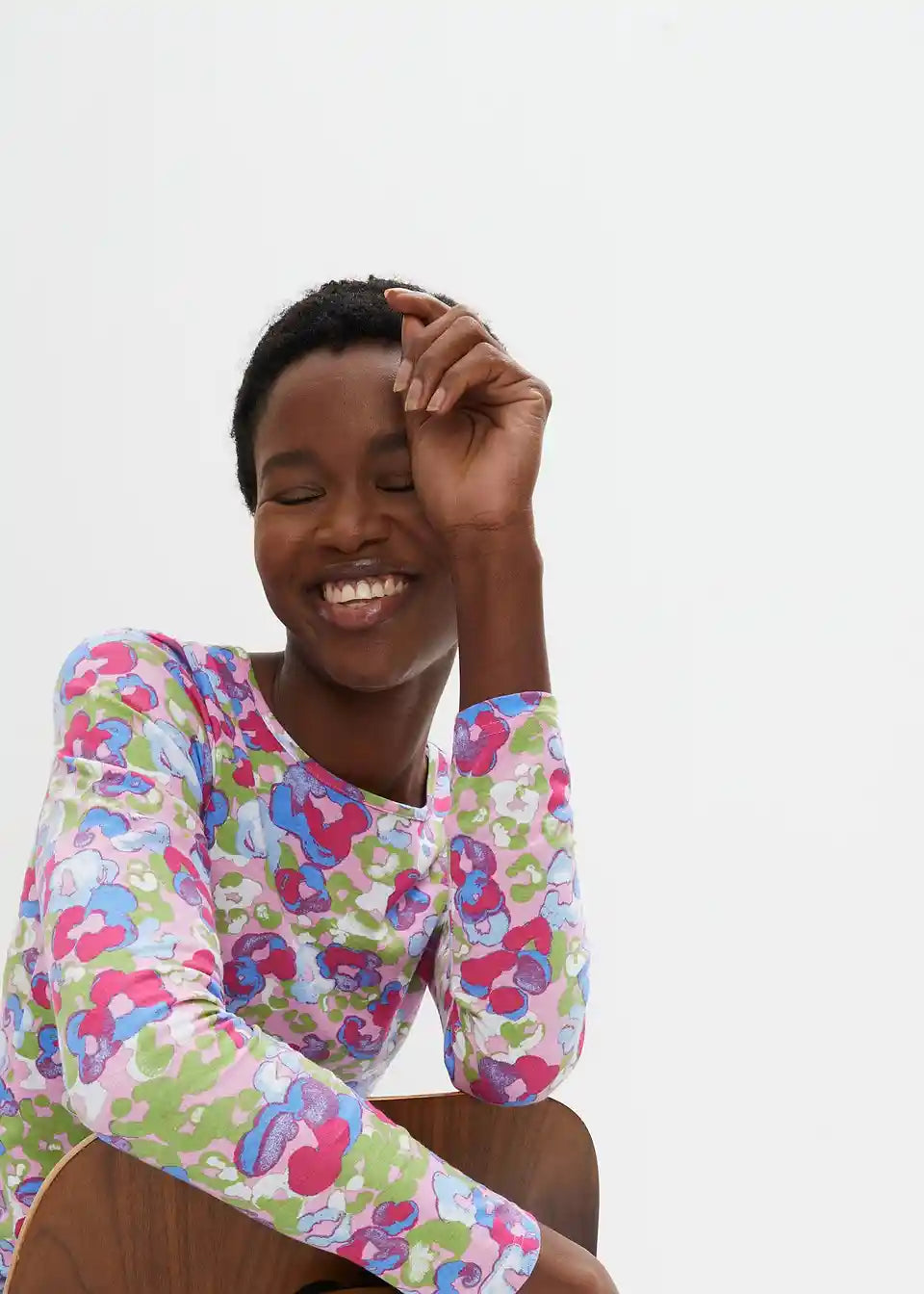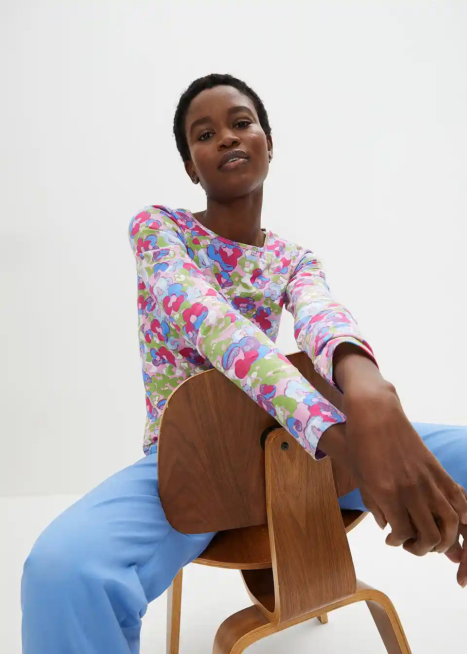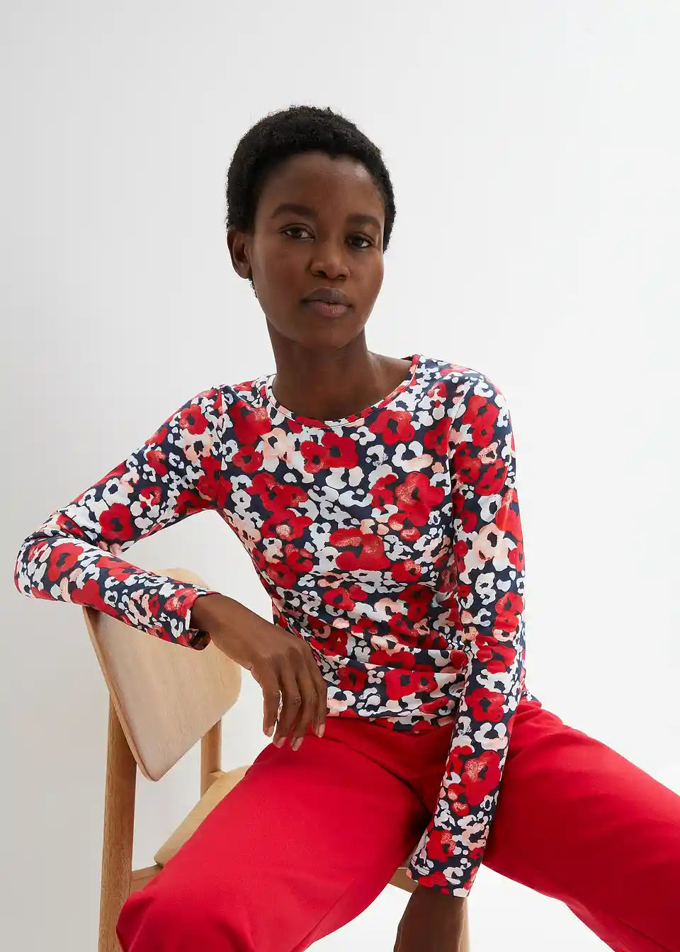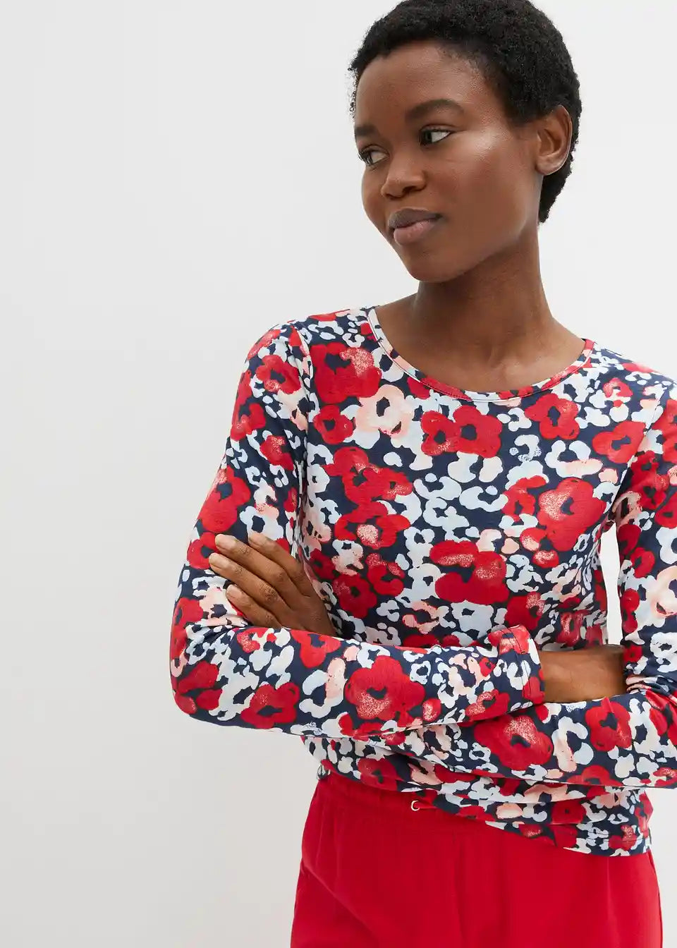 Figurbetonendes Shirt mit floralem Muster und Rundhalsausschnitt