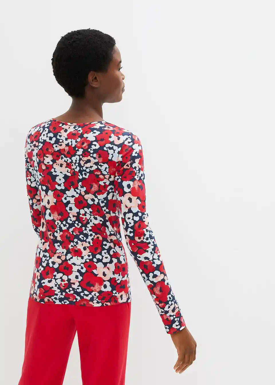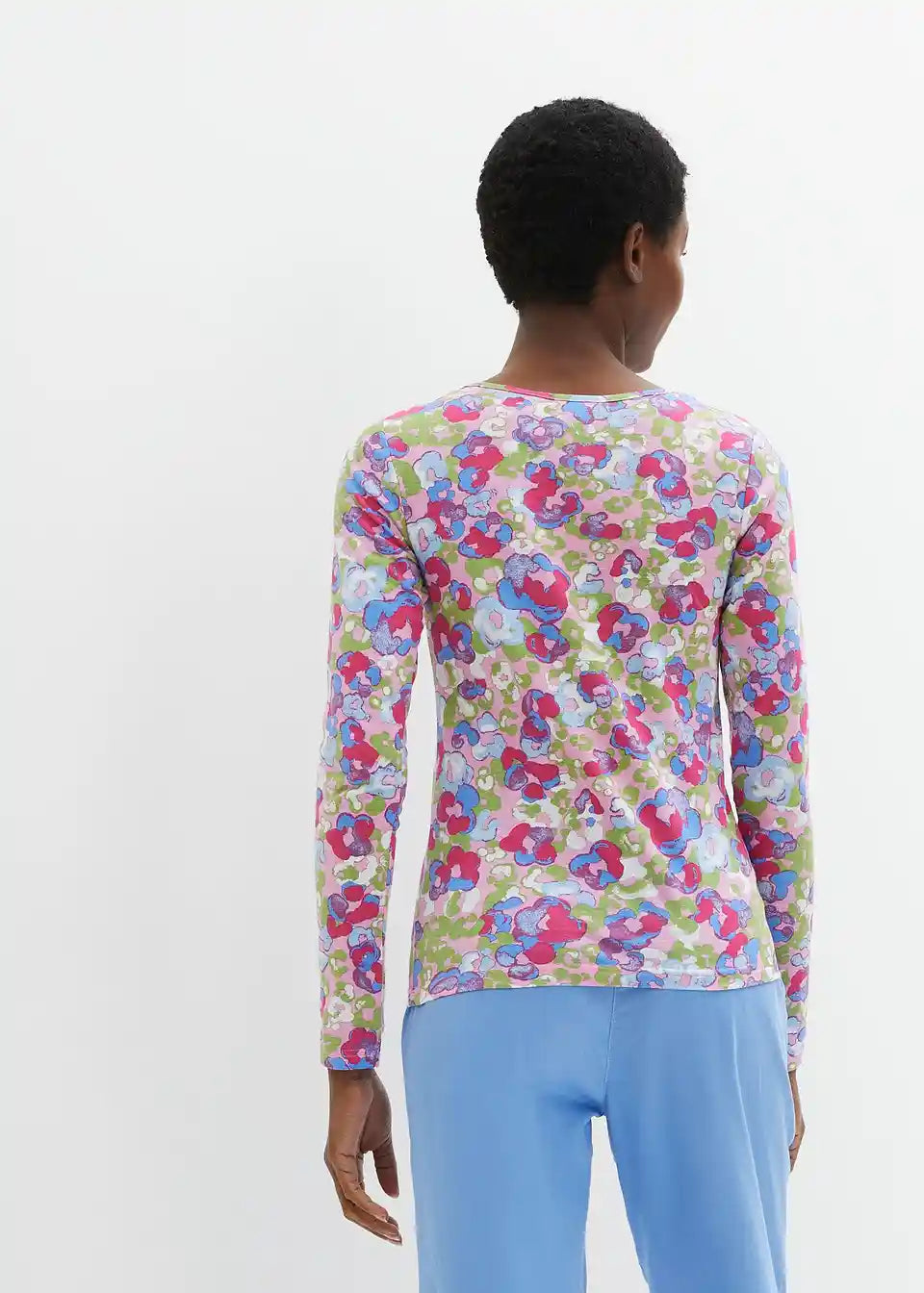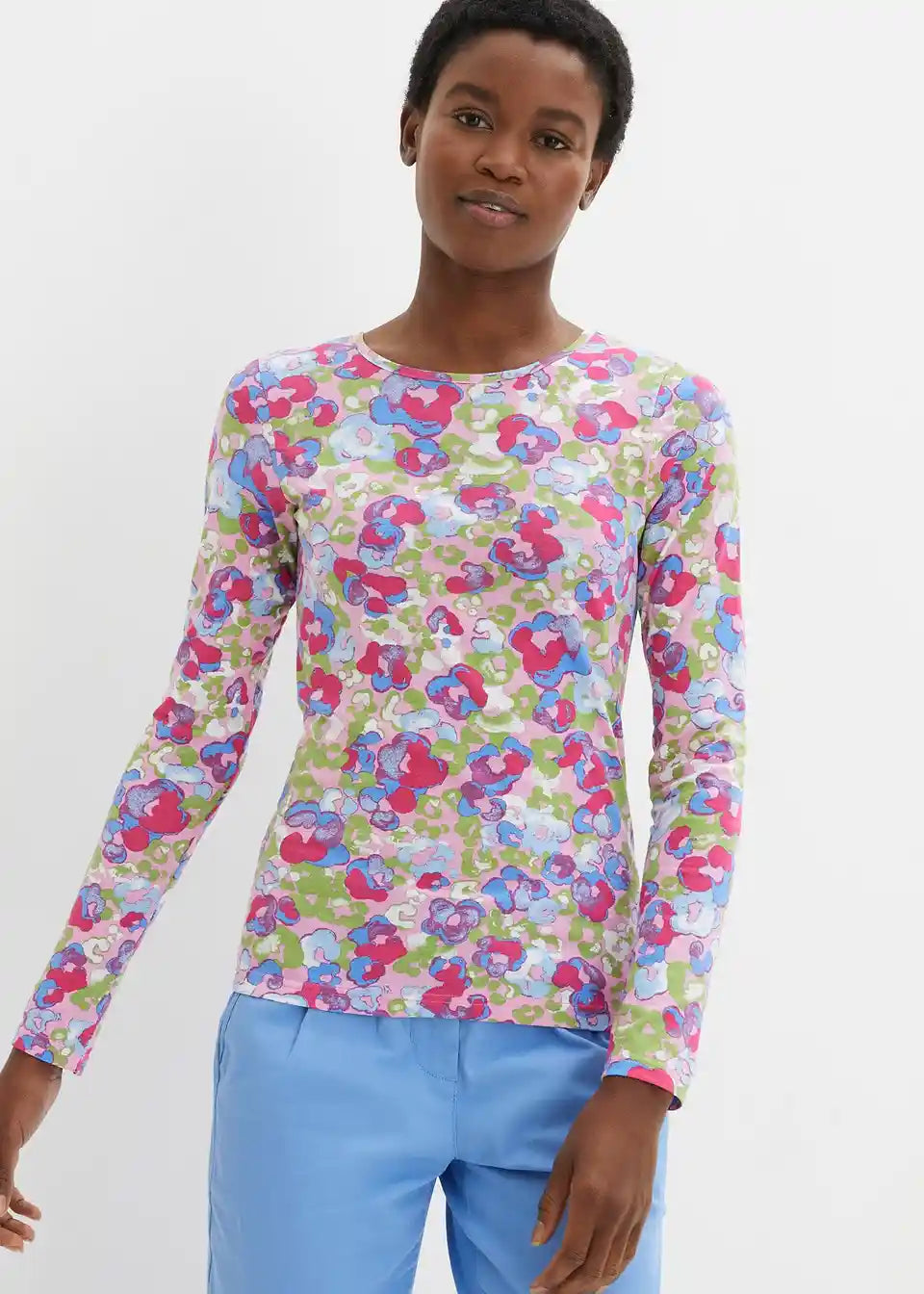 Figurbetonendes Shirt mit floralem Muster und Rundhalsausschnitt
