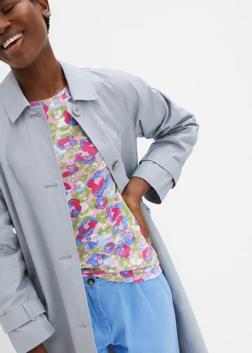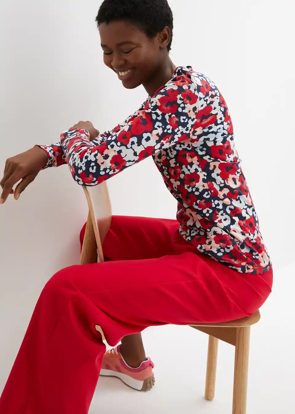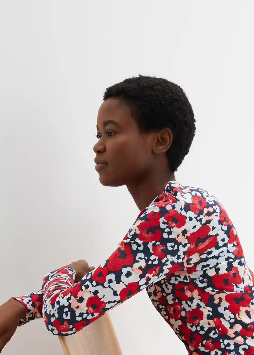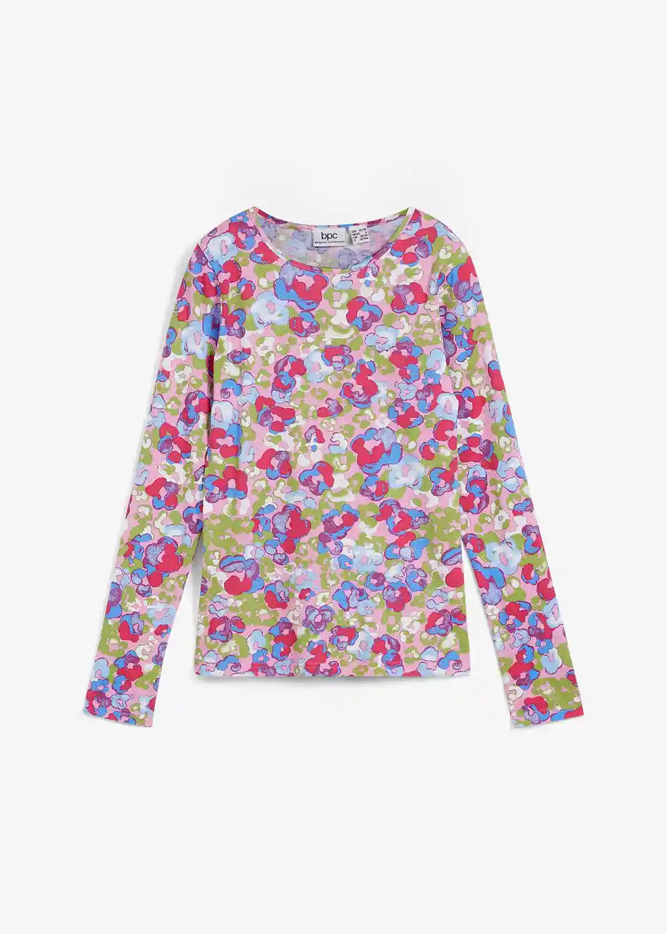 Figurbetonendes Shirt mit floralem Muster und Rundhalsausschnitt