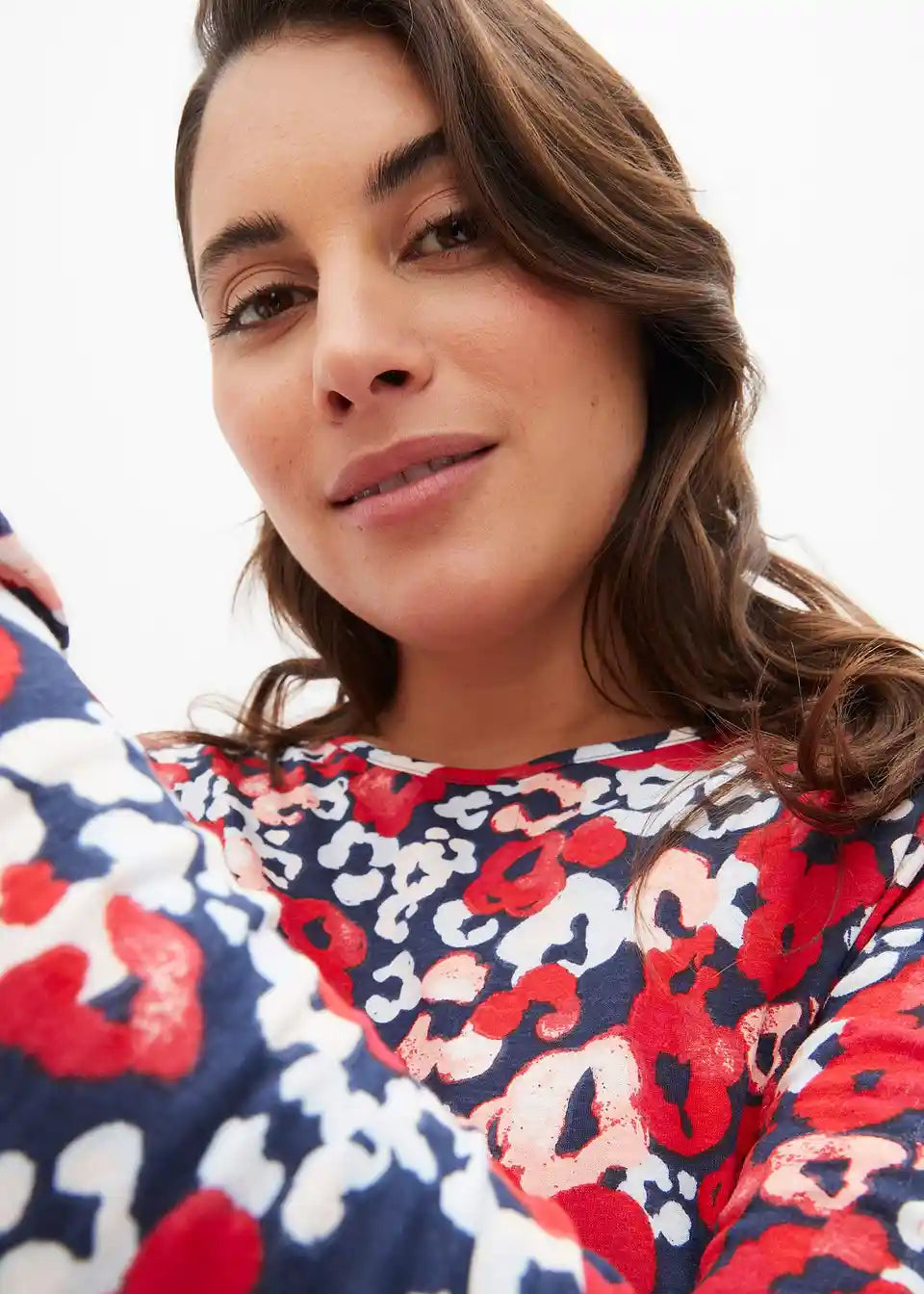 Figurbetonendes Shirt mit floralem Muster und Rundhalsausschnitt