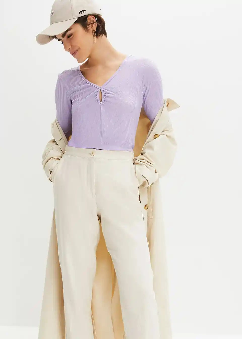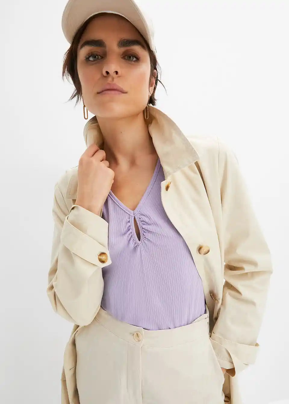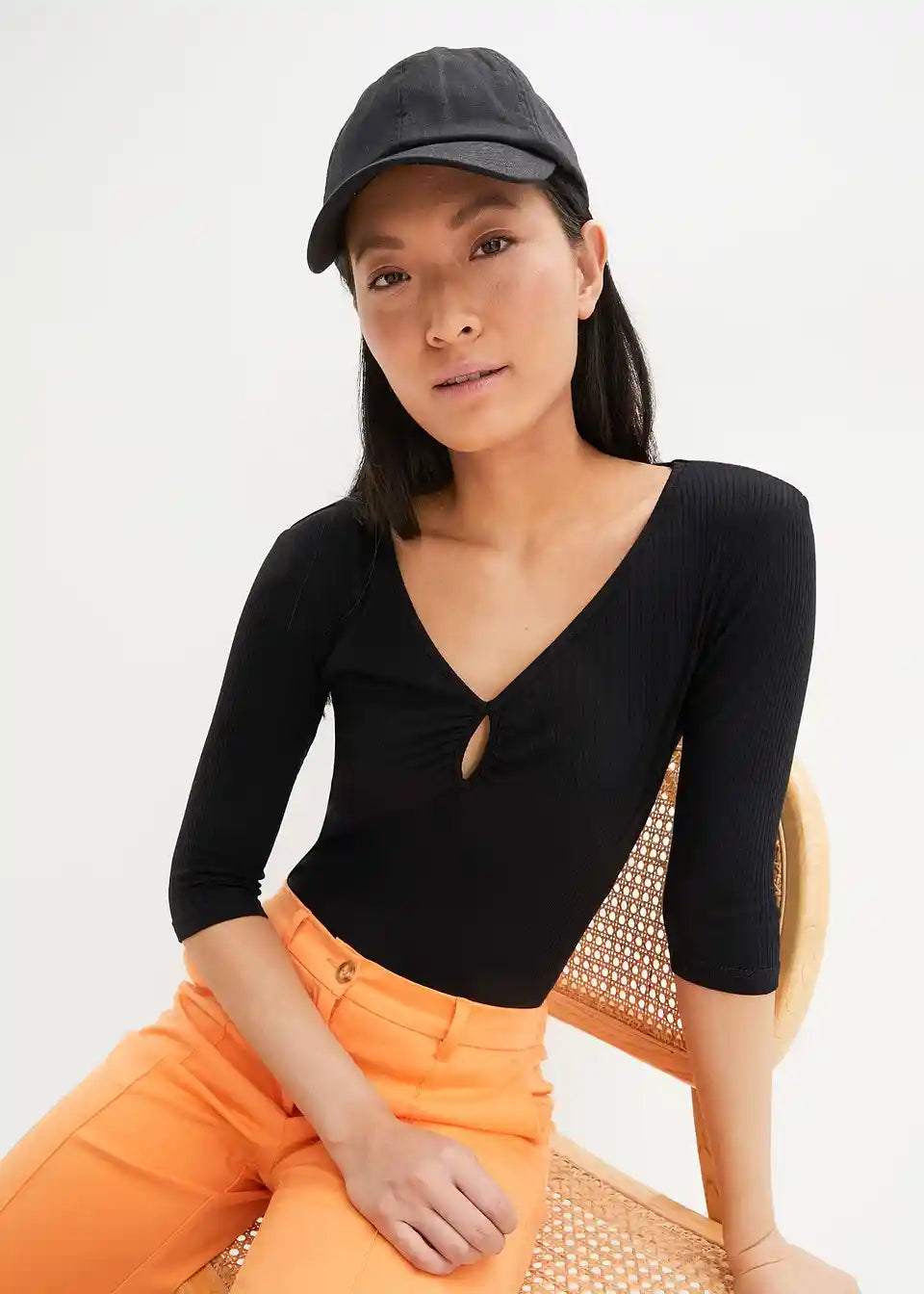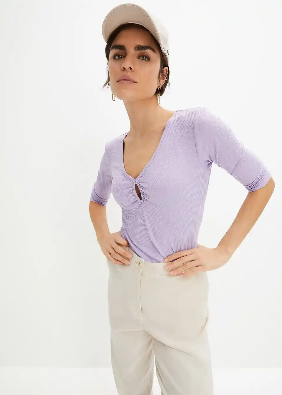 Eng anliegendes Shirt mit Ausschnitt-Detail, halbarm
