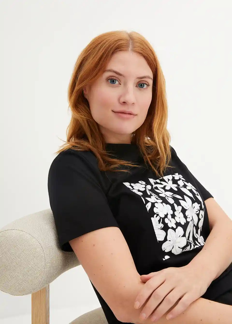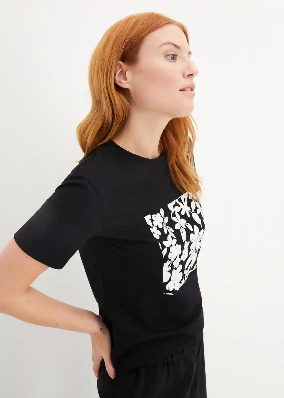 Basic T-Shirt mit Blumendruck