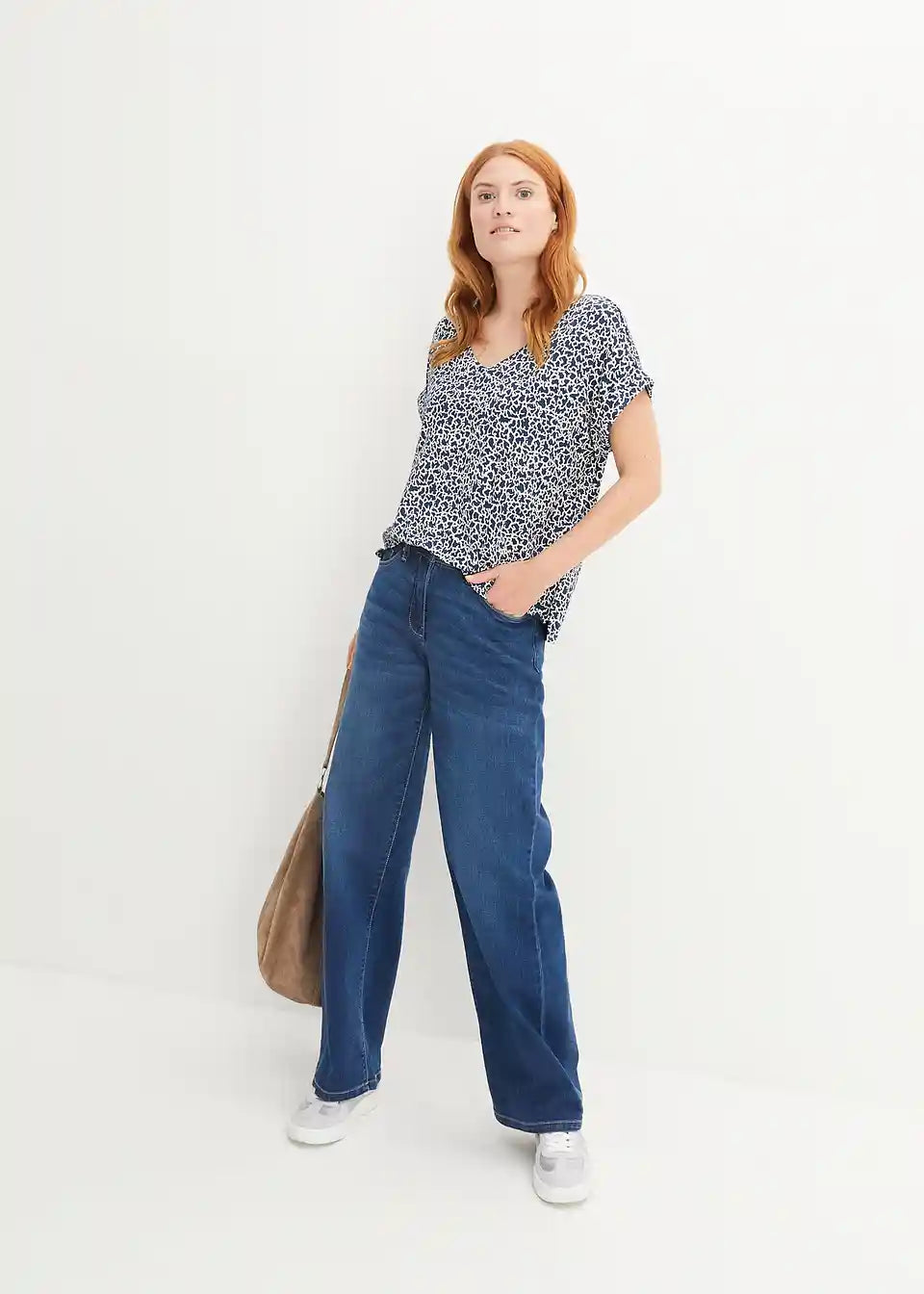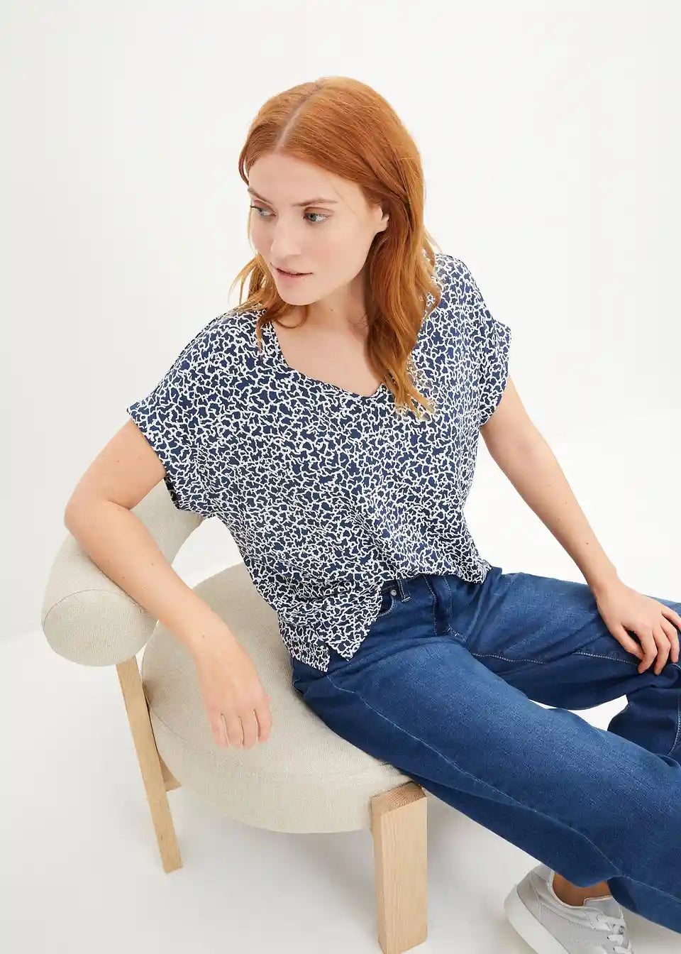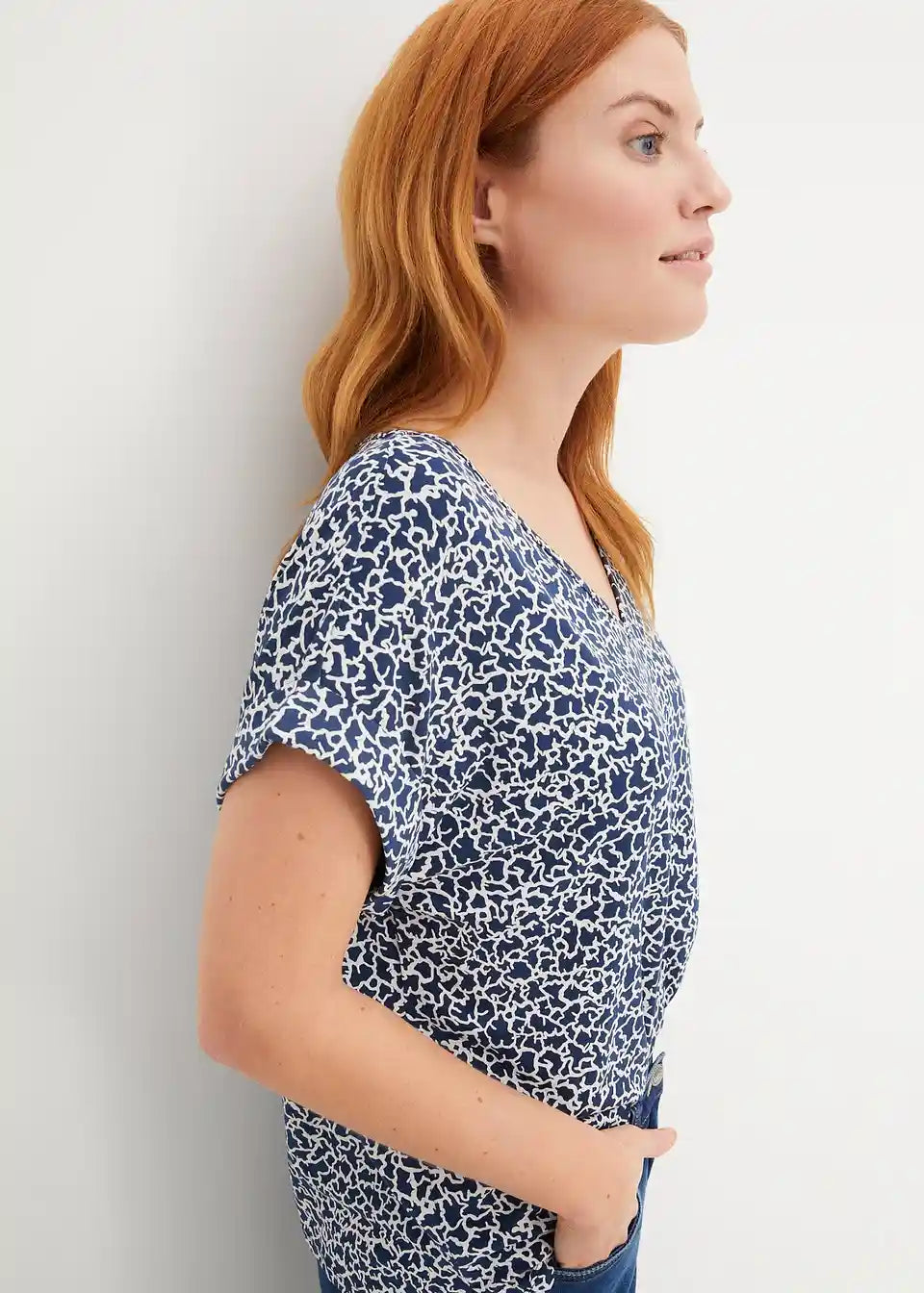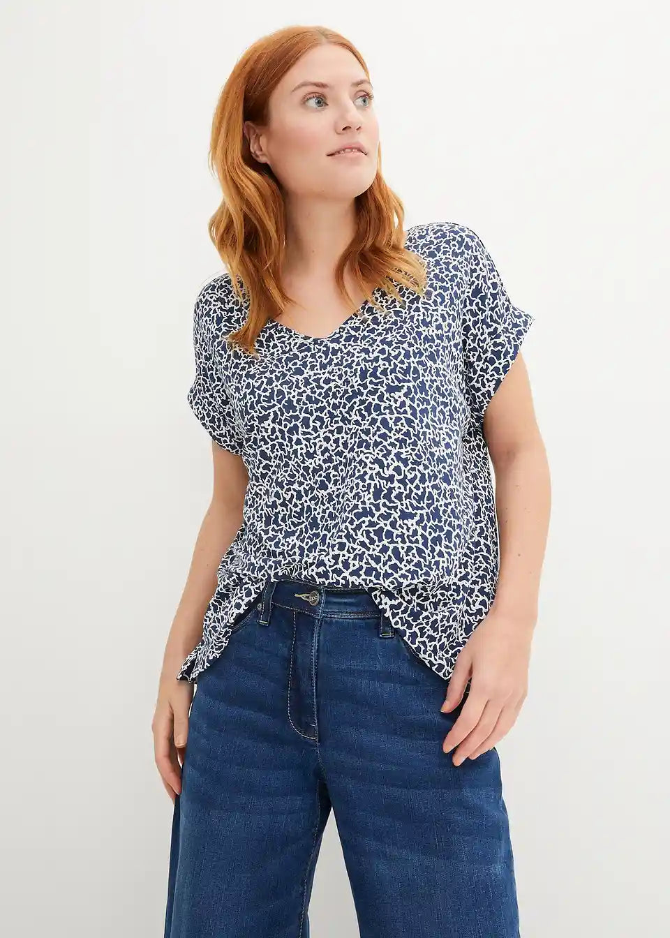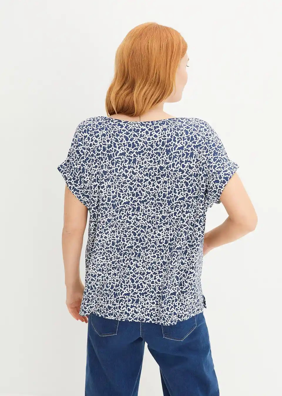Gemustertes Shirt aus Viskose mit V-Ausschnitt