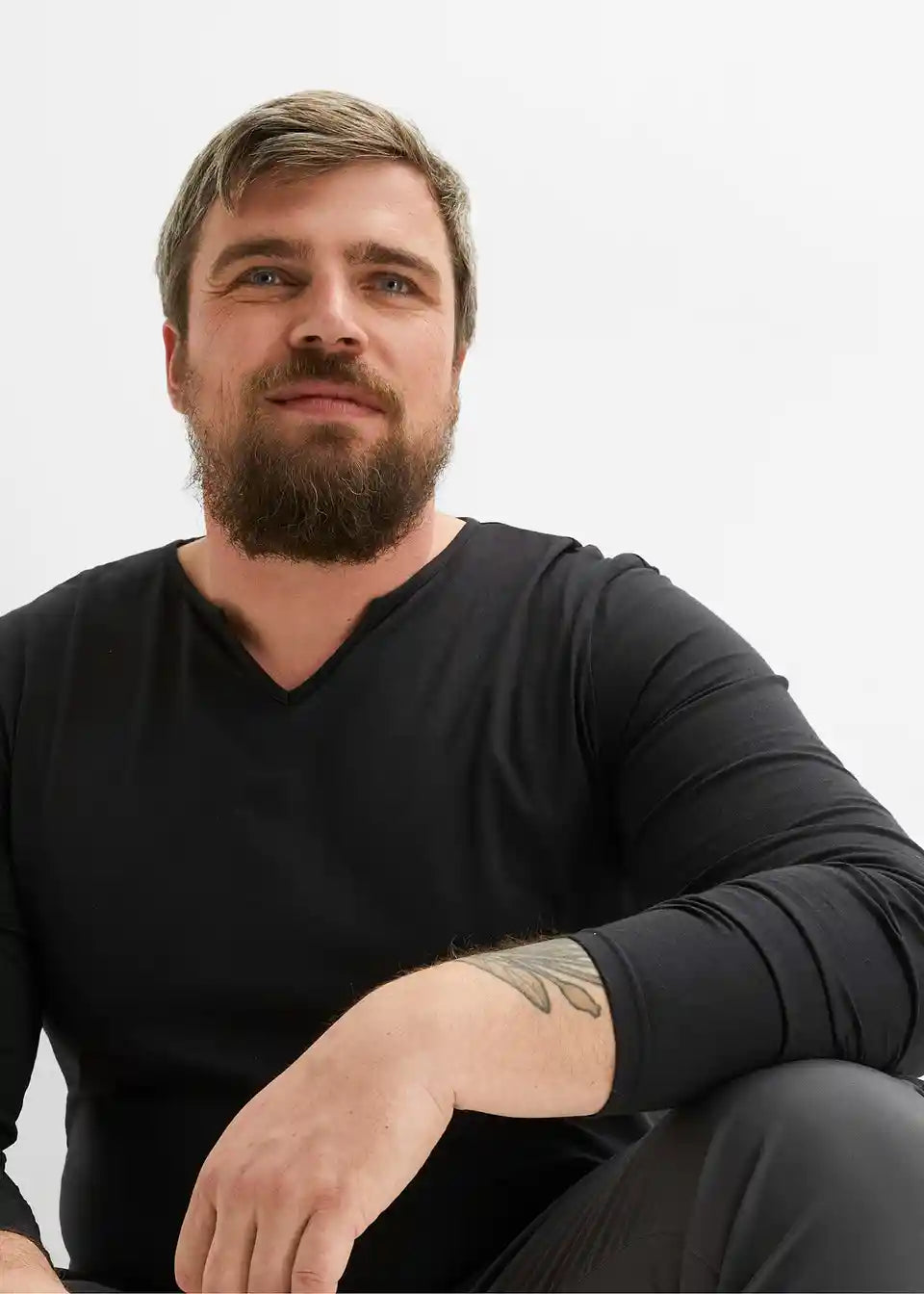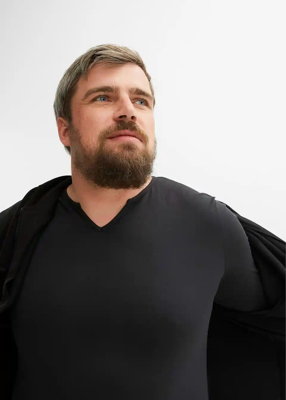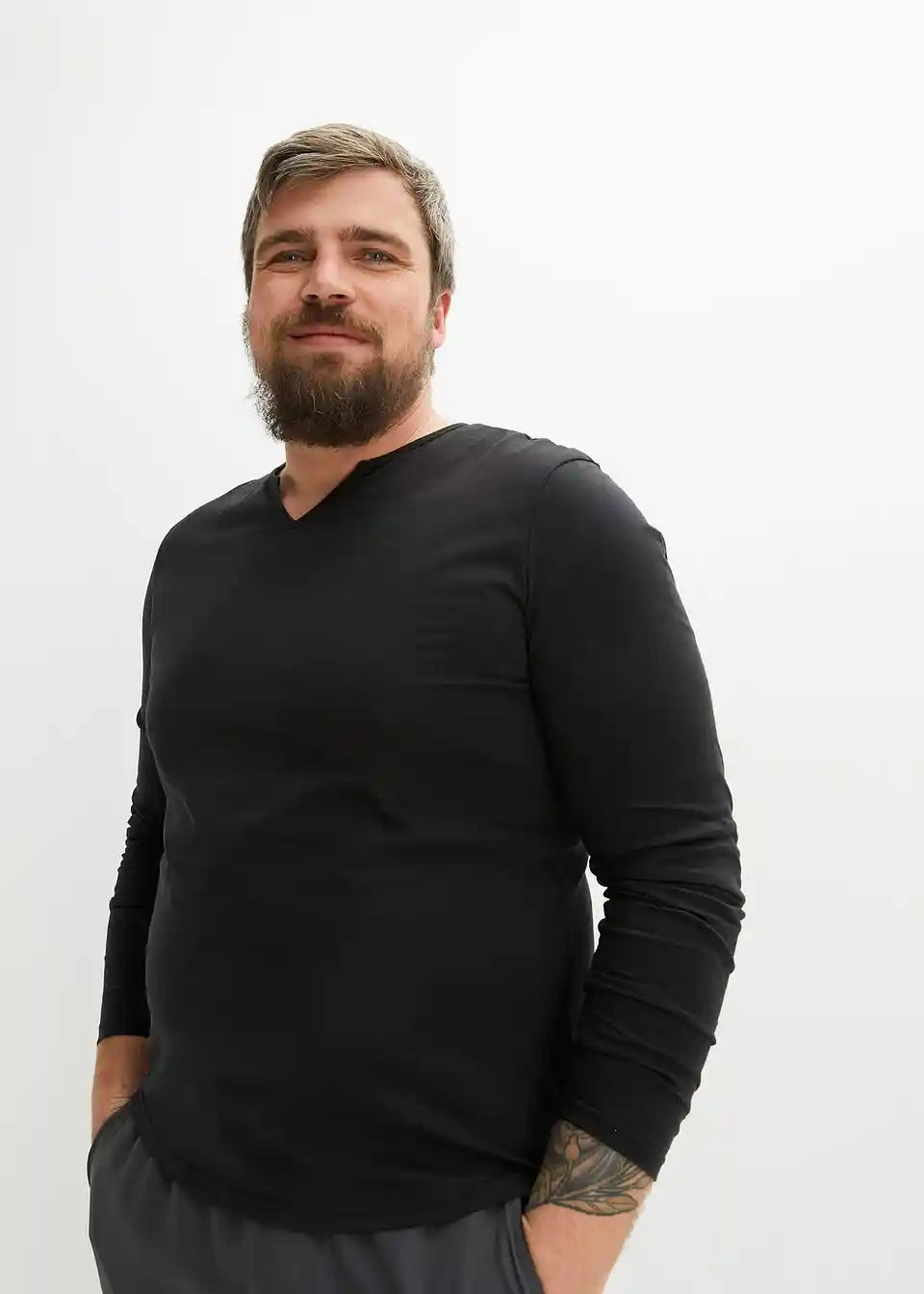 Langarmshirt mit V-Ausschnitt, Slim Fit