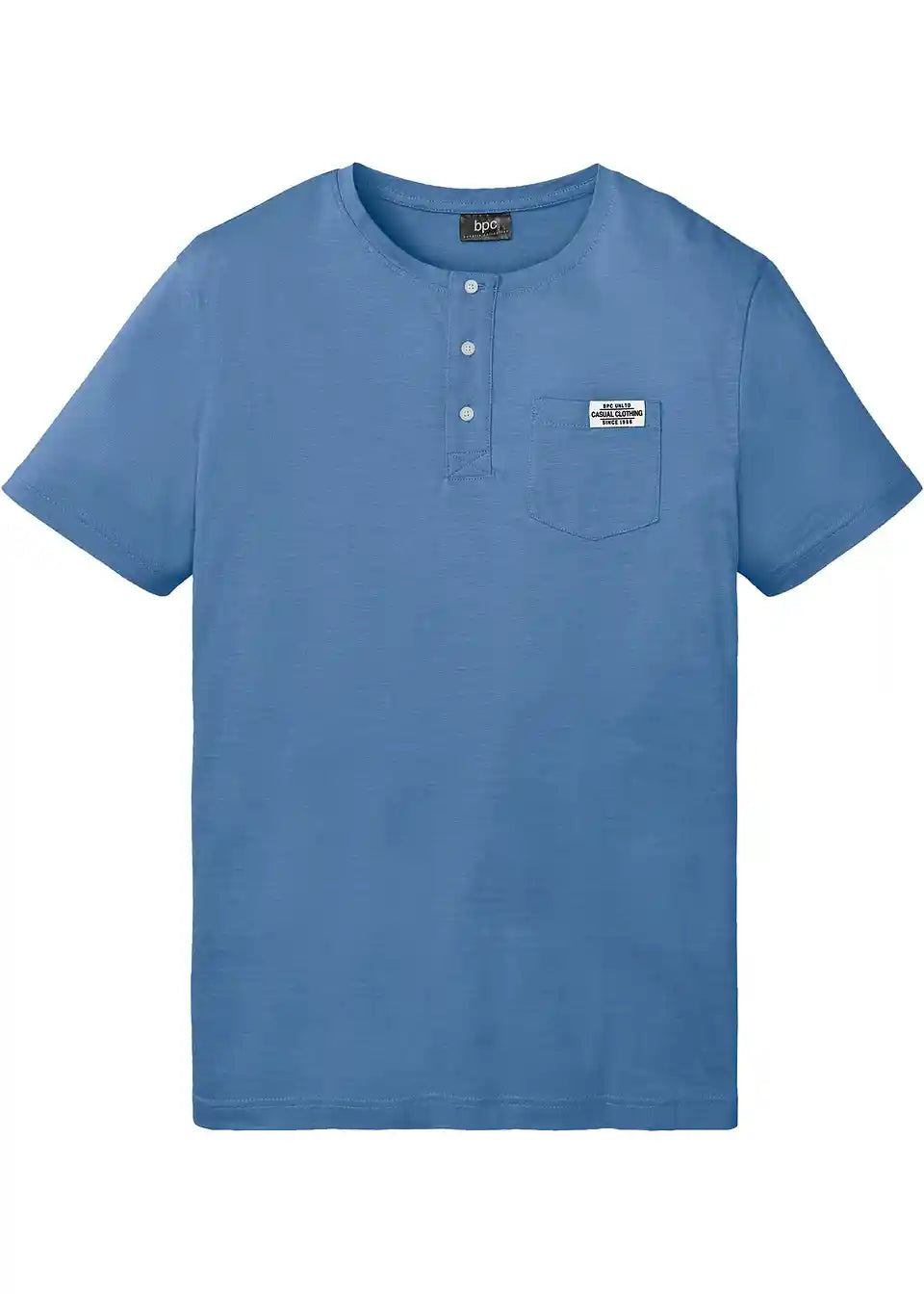 Henleyshirt, Kurzarm mit Komfortschnitt aus reiner Bio-Baumwolle