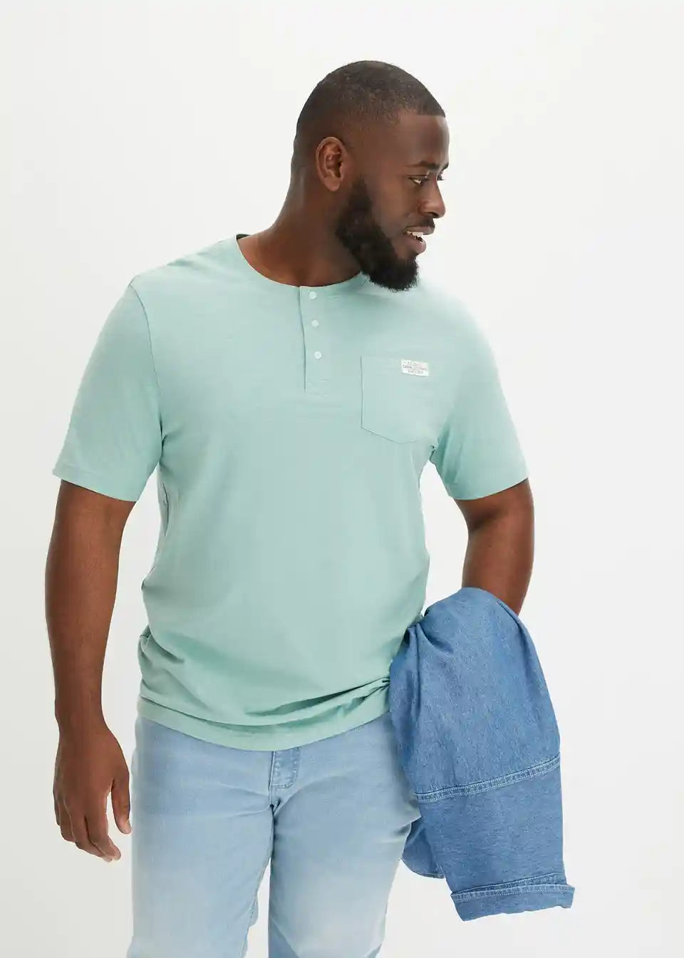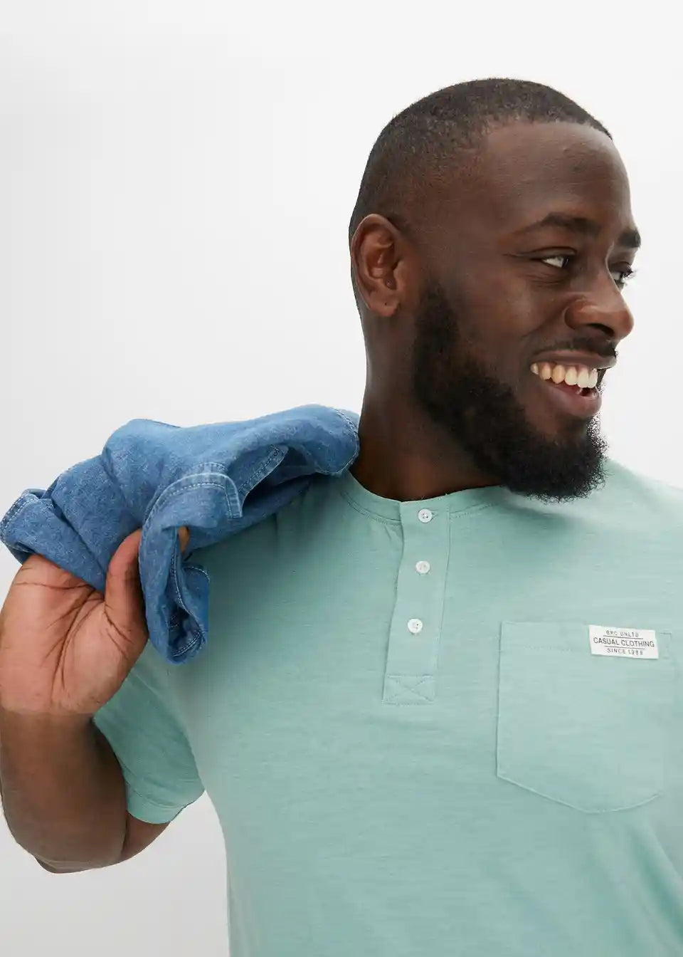Angesagtes Komfortschnitt-Henleyshirt mit Tasche und einem kleinen Label auf der Brust, maschinenwaschbar