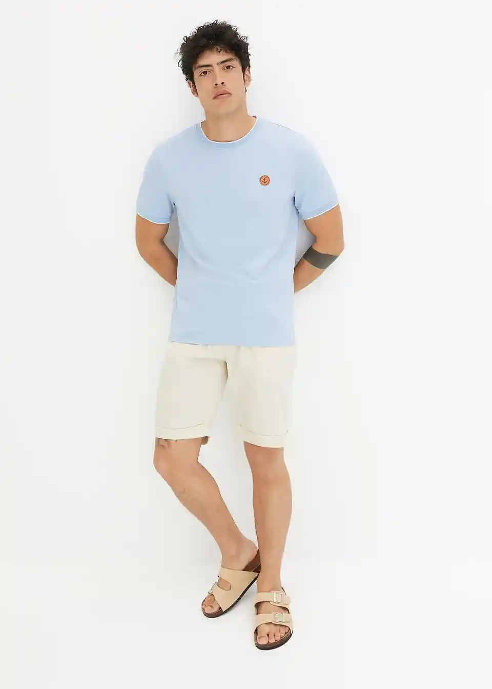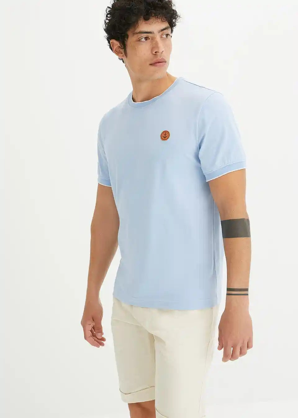 Cooles T-Shirt in Doppeloptik mit einem Lederimitat-Badge auf der Brust