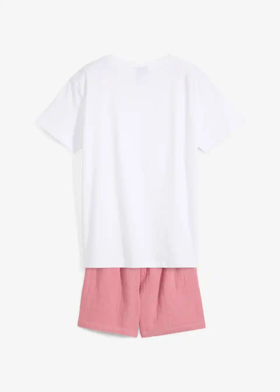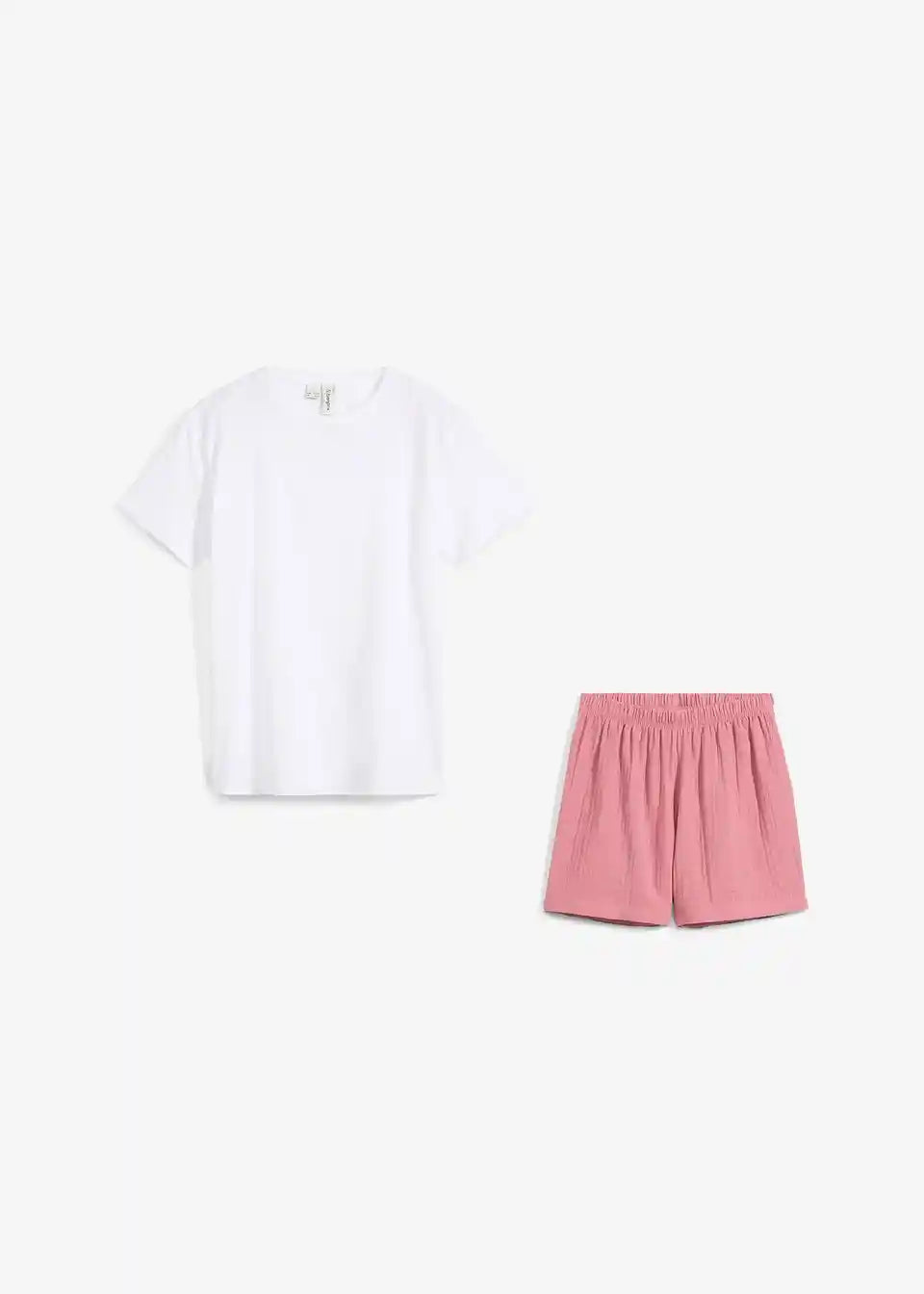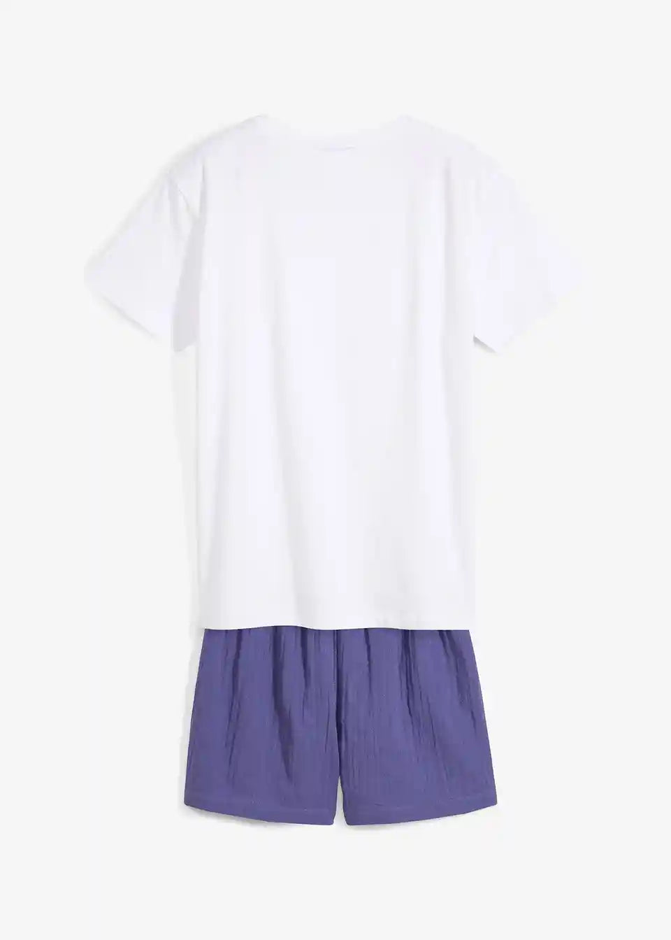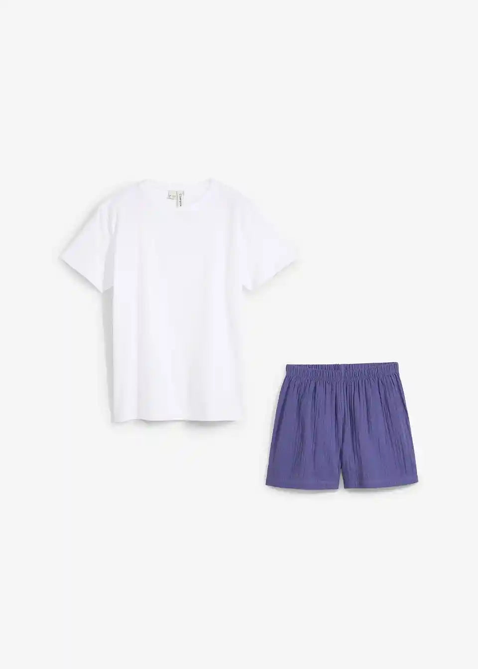 Schöner unisex Shorty bestehend aus einem Shirt aus Baumwolle und einer Shorts aus atmungsaktivem und weich Musselin-Stoff.