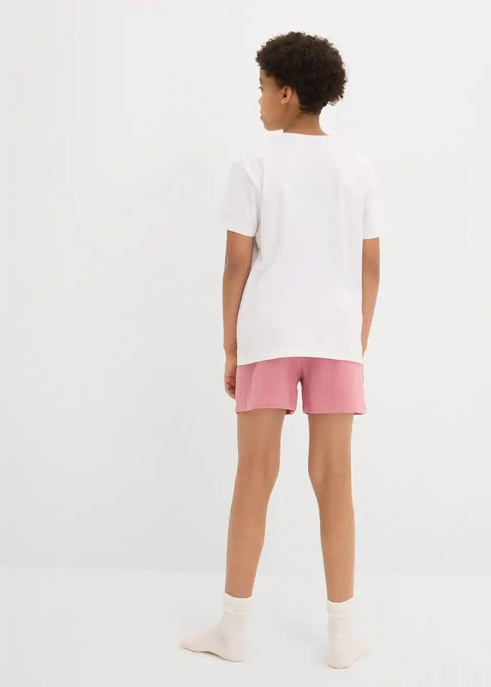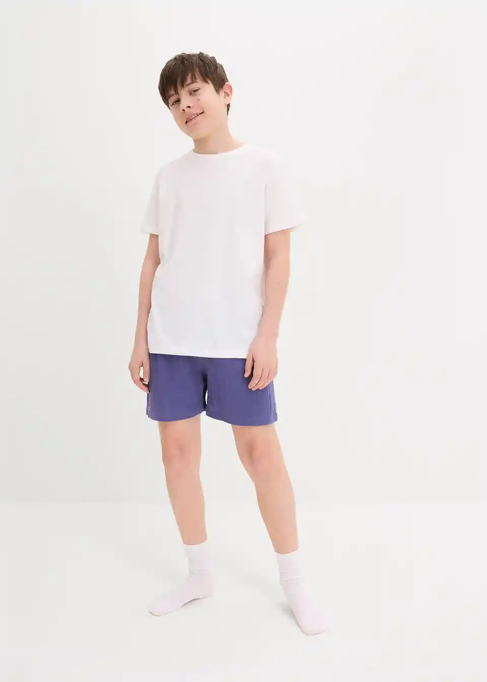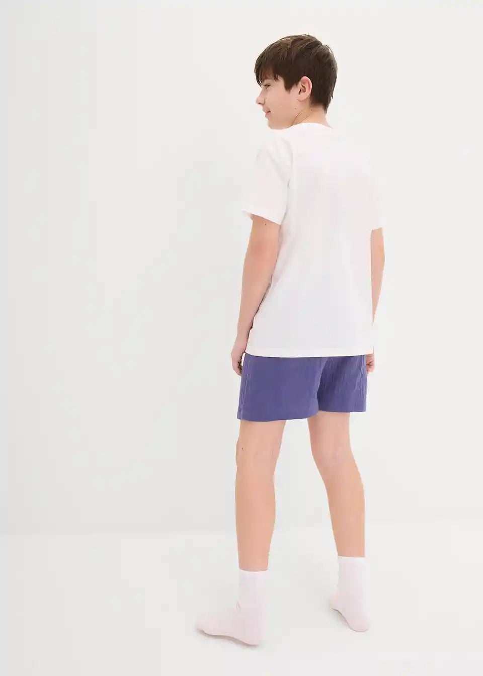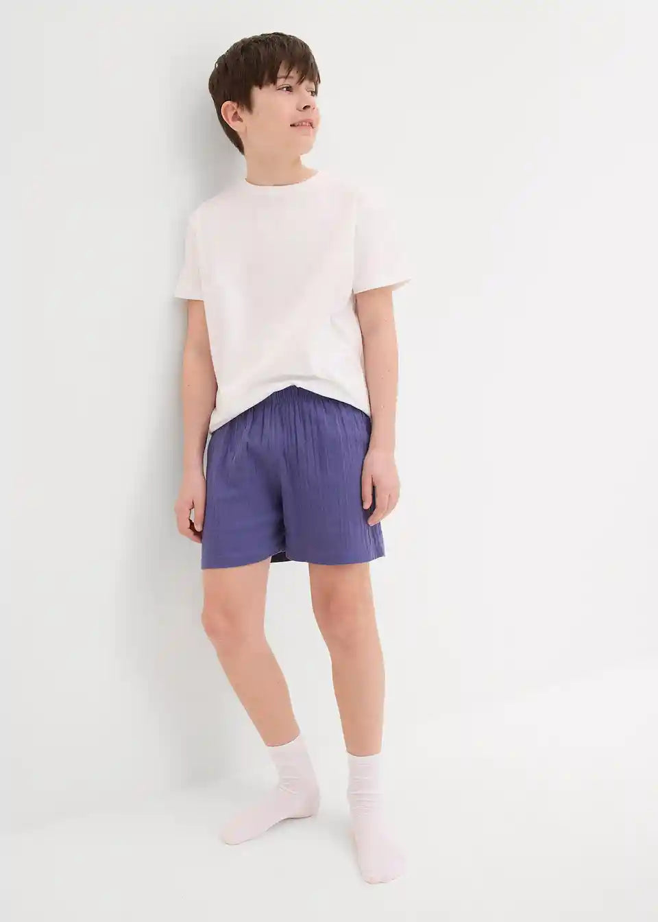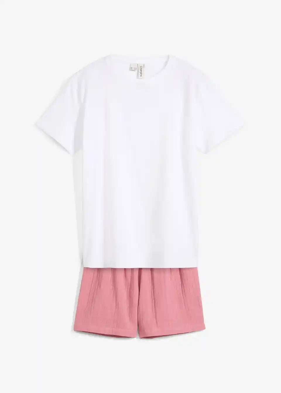 Schöner unisex Shorty bestehend aus einem Shirt aus Baumwolle und einer Shorts aus atmungsaktivem und weich Musselin-Stoff.