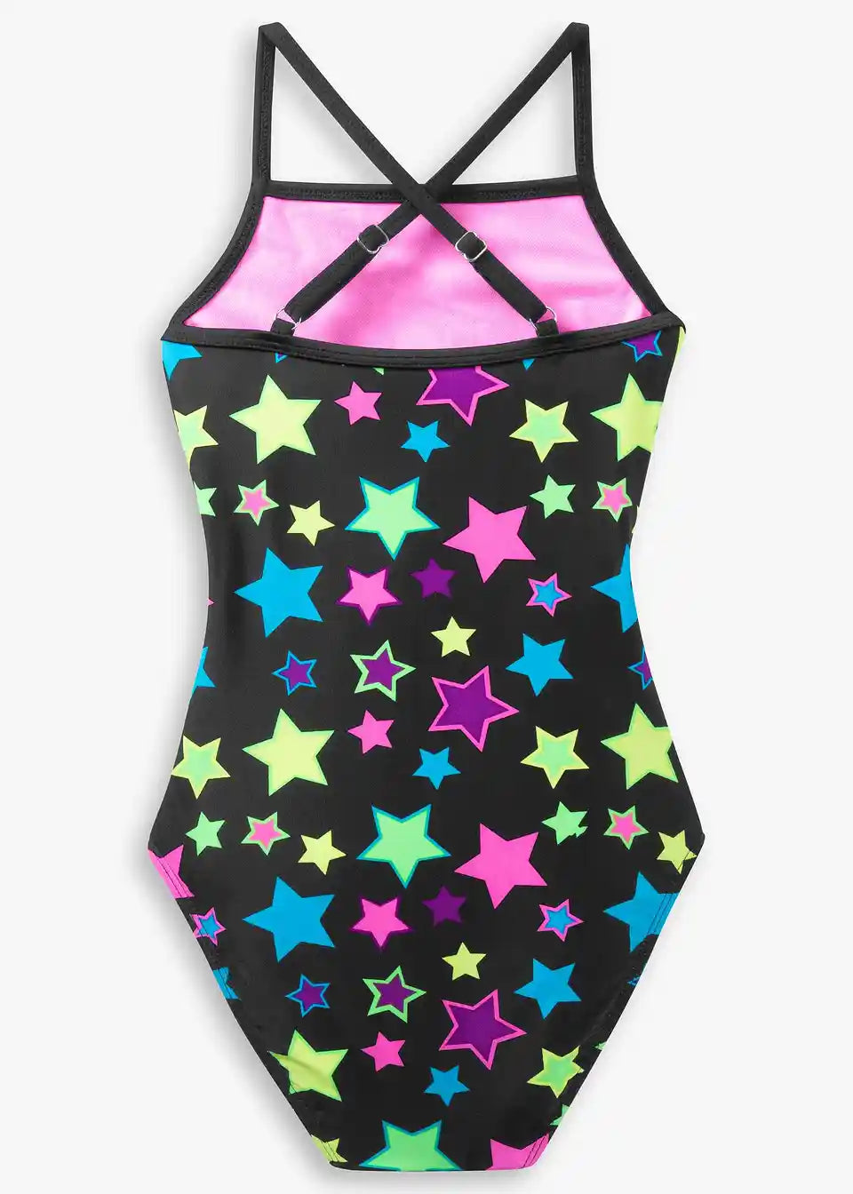 Toller Badeanzug cool bedruckt. Da wird sogar der langweiligste Urlaubstag magisch. Die Träger lassen sich verstellen und hinten gekreuzt.