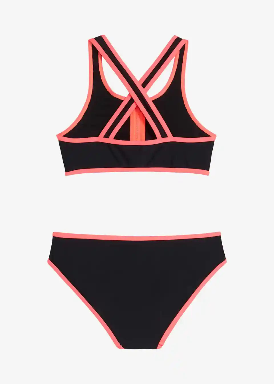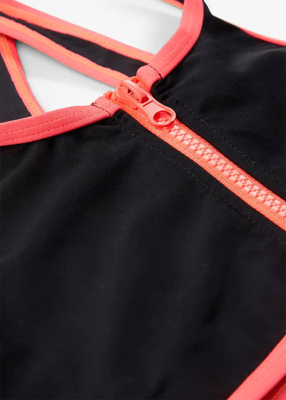 Sportlicher Bikini mit Reißverschluss Detail und Säumen in Kontrastfarbe.
