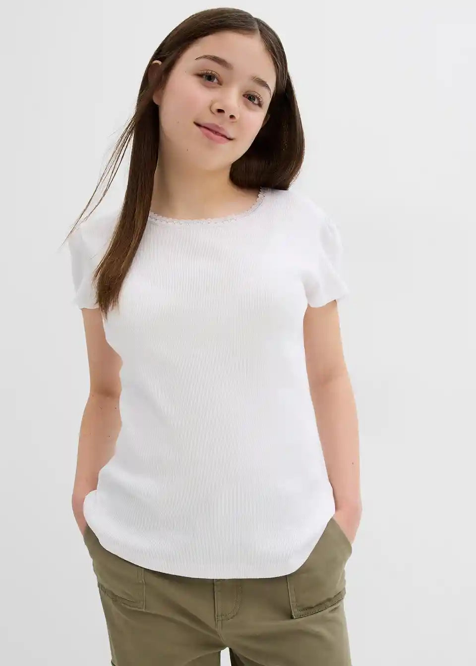 Schönes Mädchen T-Shirt mit Spitzendetails