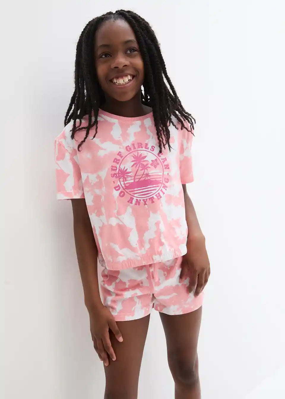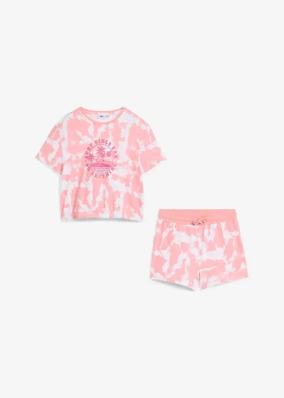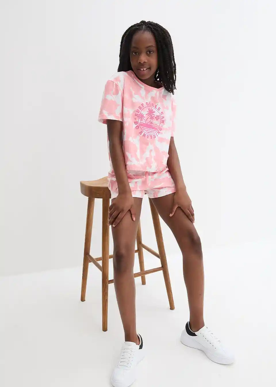 Schönes Mädchen T-Shirt mit kurzer Hose in Batikoptik im 2-tlg. Set
