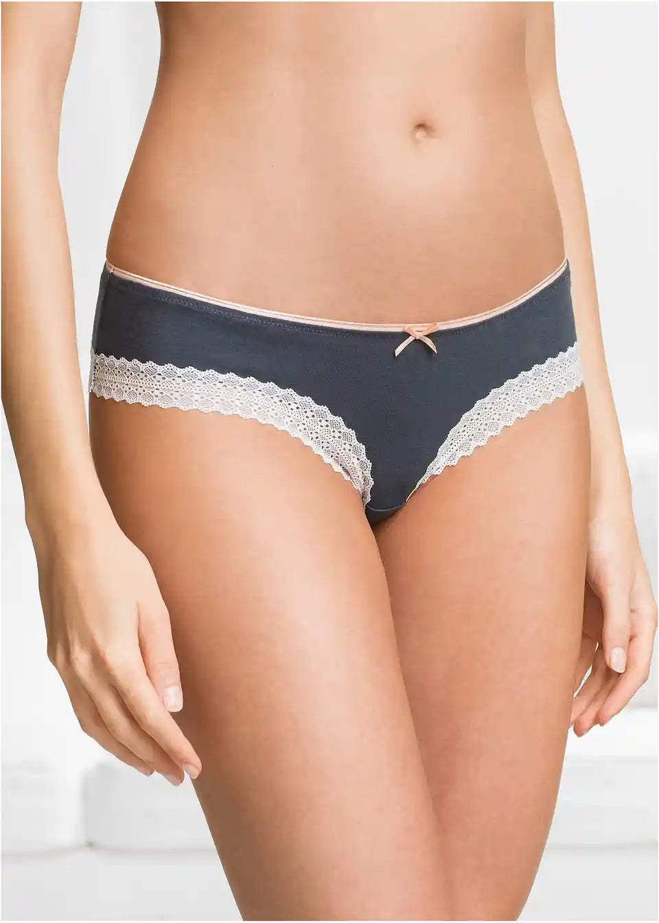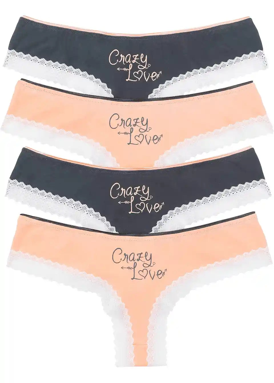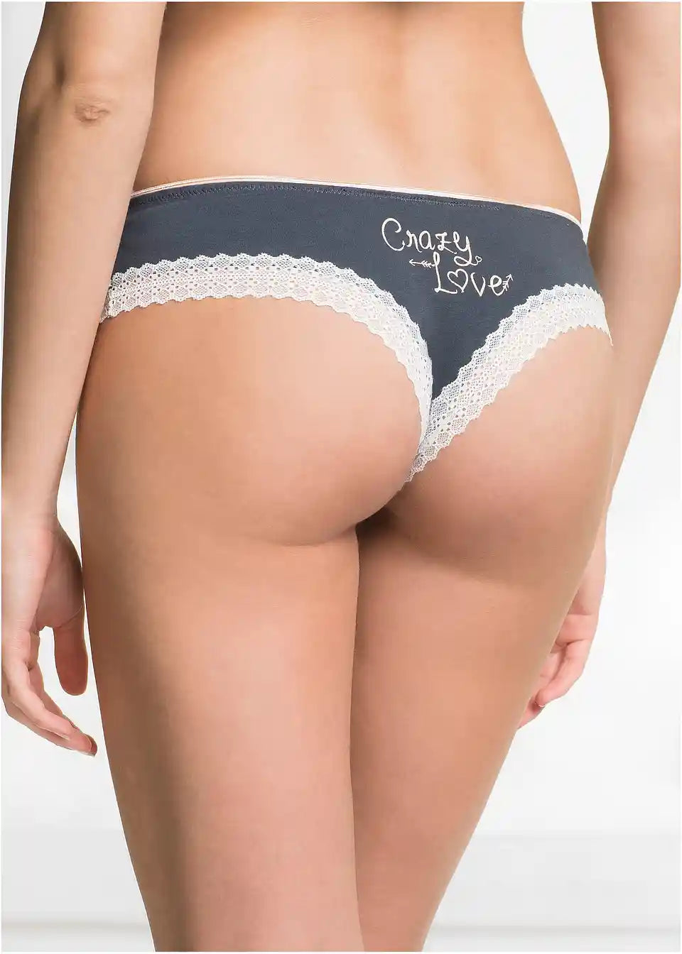 »So crazy in love« mit dem anschmiegsamen Brazil Slip im praktischen Multipack. Seine frische, unaufgeregte Optik verbindet sich ganz easy mit einem schwungvollen Schriftzug-Print an der Vorderseite. Ein stylisches Zierschleifchen am elastischen Bund sowie die kontrastvolle Häkelspitze entlang der Beinausschnitte unterstreichen die süße Message. Das Besondere an dem Slip ist der Brazil Cut, welcher die Rundungen des Pos sexy zur Geltung bringt. Ein Must-Have für alle Mädels, die aufregende Wäsche mit Wohlfühlfaktor lieben.