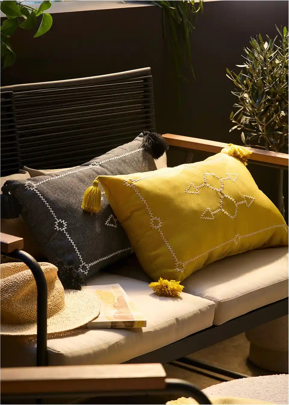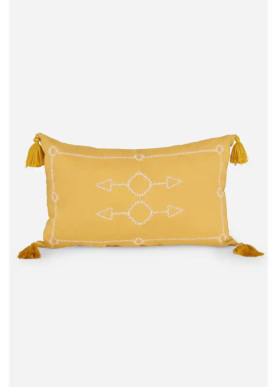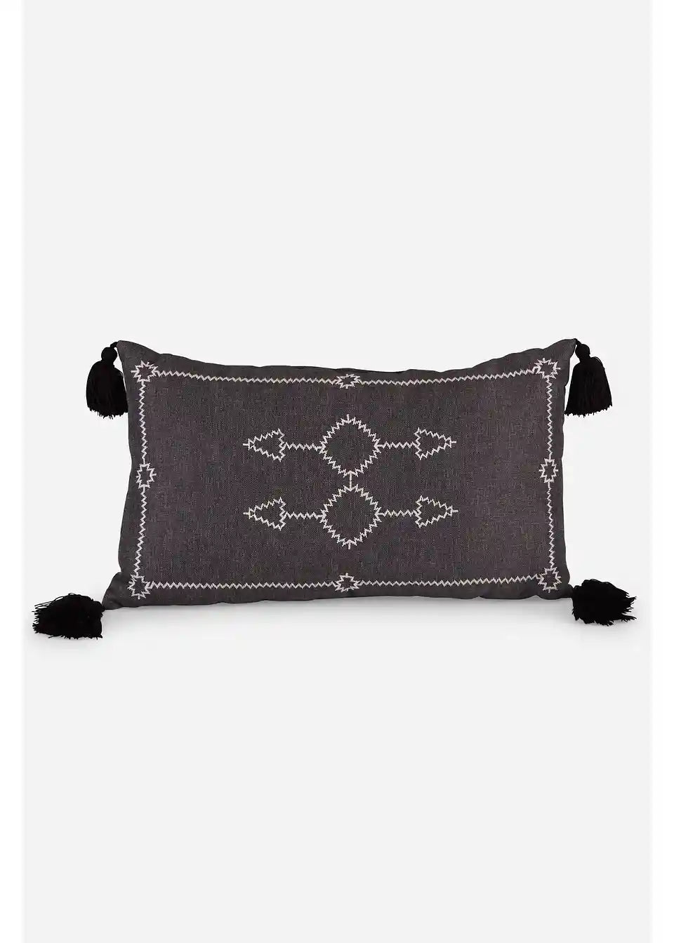 Verleihe deinem Wohnraum Charme mit unserem Dekokissen, das mit Stickerei und verspielten Quasten verziert ist! Die kunstvollen Details bringen Farbe und Textur und setzen einen lebendigen Akzent im Boho-Stil.