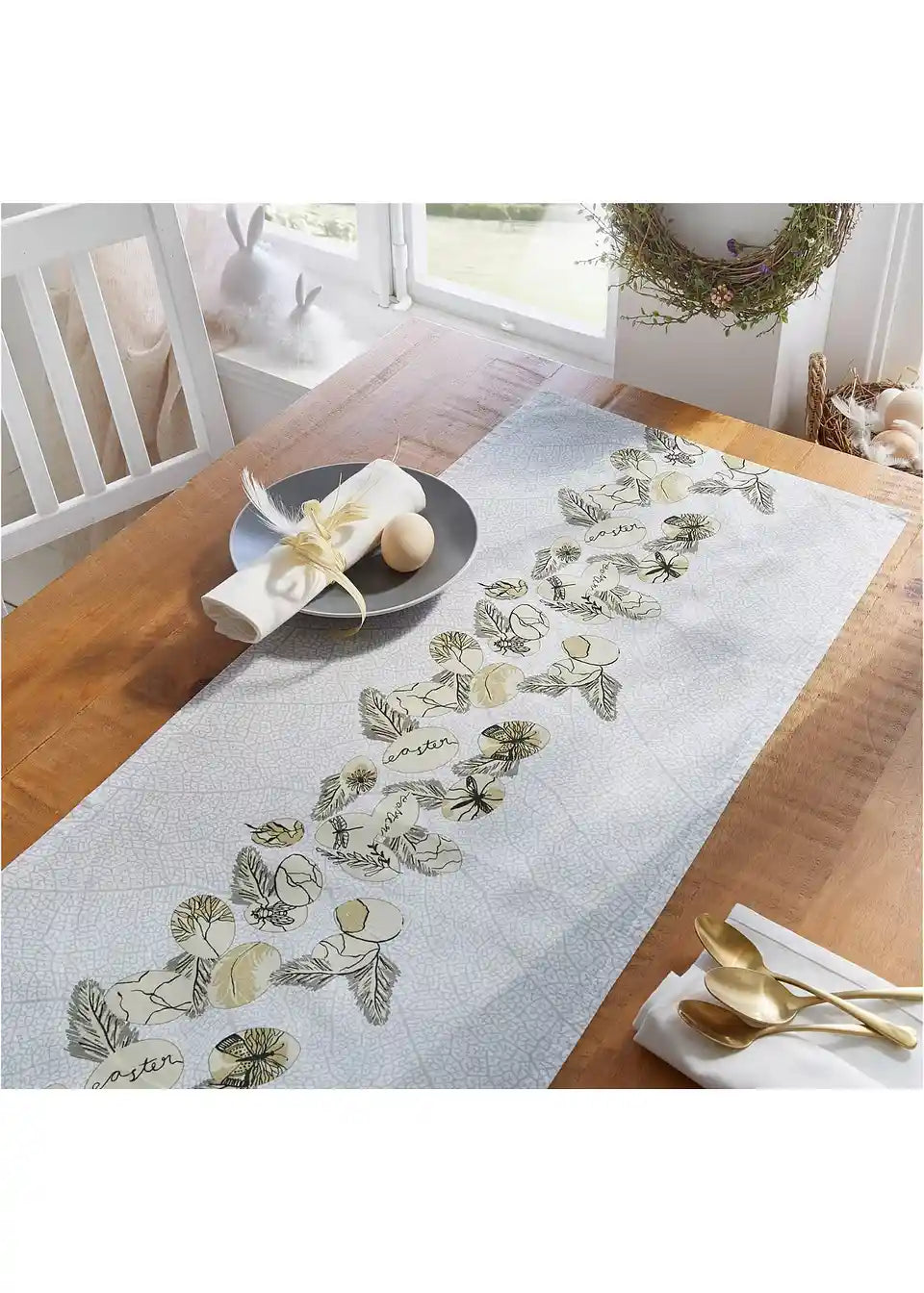 Runde Deine Ostertafel perfekt ab mit diesem Tischläufer aus Bio Baumwolle mit zartem Druck.