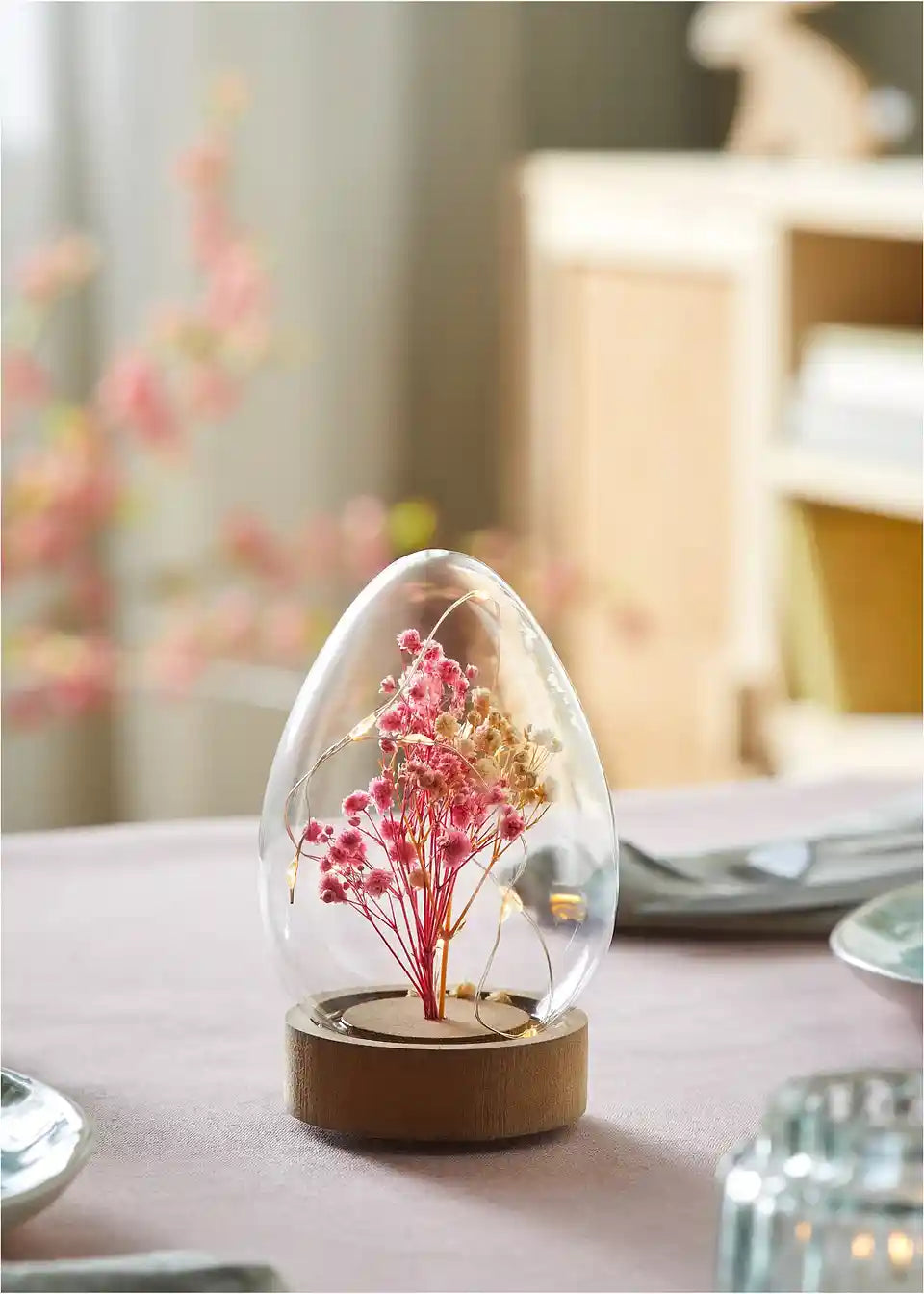 Originelle Osterdekoration - Ei mit Trockenblumen und einer stimmungsvolle LED Beleuchtung. Ein Hingucker in jedem Wohnbereich in der Osterzeit. Inkl. 2xCR2032 Batterien.
