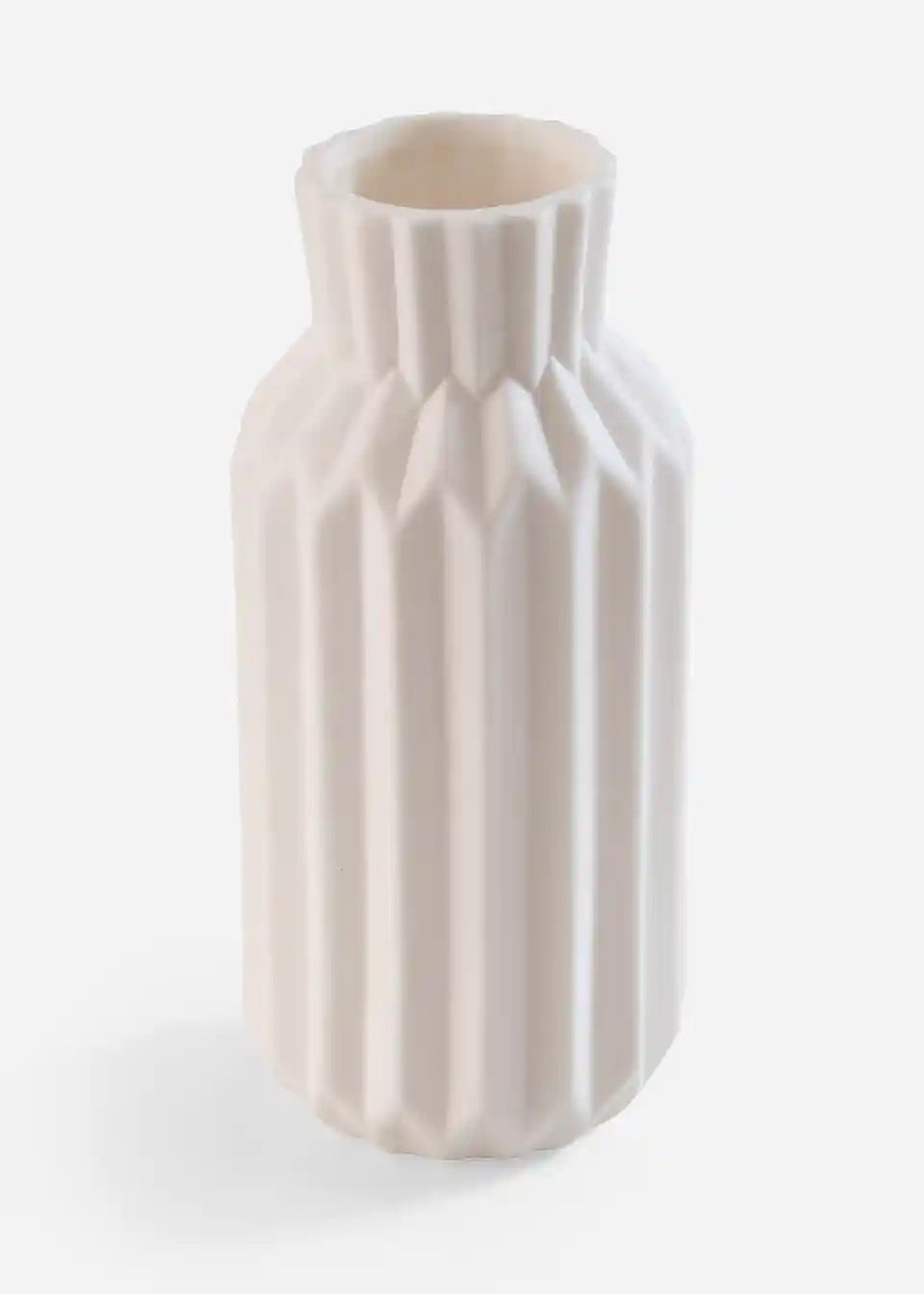 Verleihe Deinem Wohnraum mit dieser einzigartigen Vase einen modernen Akzent. Die ansprechende, facettierte Form und die strahlend weiße Oberfläche schaffen eine stilvolle Ästhetik, die sowohl zeitlos als auch zeitgemäß ist. Diese Vase eignet sich hervorragend für frische Blumen oder als dekoratives Element, das auch ohne Inhalt beeindruckt. Ihr minimalistisches Design fügt sich harmonisch in verschiedene Einrichtungsstile ein und sorgt dafür, dass sie in jedem Raum zum Blickfang wird