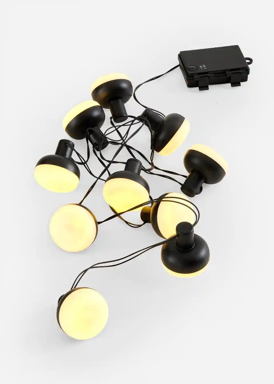 Diese moderne Lichterkette bringt ein frisches, zeitgemäßes Flair in jeden Raum. Die Kombination aus schwarzen und weißen Lampenschirmen sorgt für einen interessanten Kontrast und eine lebendige Ausstrahlung. Ideal für festliche Anlässe oder entspannte Abende, schafft sie eine einladende Atmosphäre und setzt kreative Akzente in Innen- und Außenbereichen. Der flexible Einsatz der Lichterkette ermöglicht es, individuelle Lichtkonzepte zu gestalten und verschiedene Bereiche stilvoll zu beleuchten.