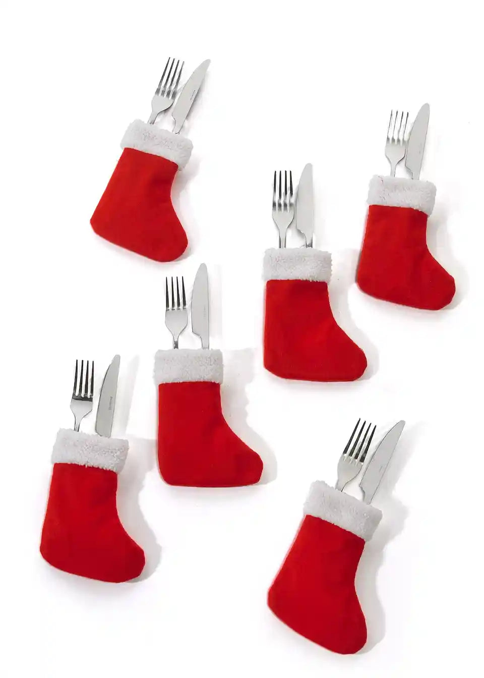 Besteckhalter in Weihnachts-Socken-Form (6er Pack)