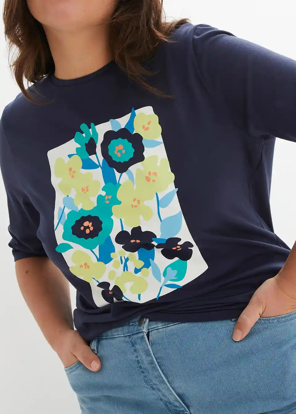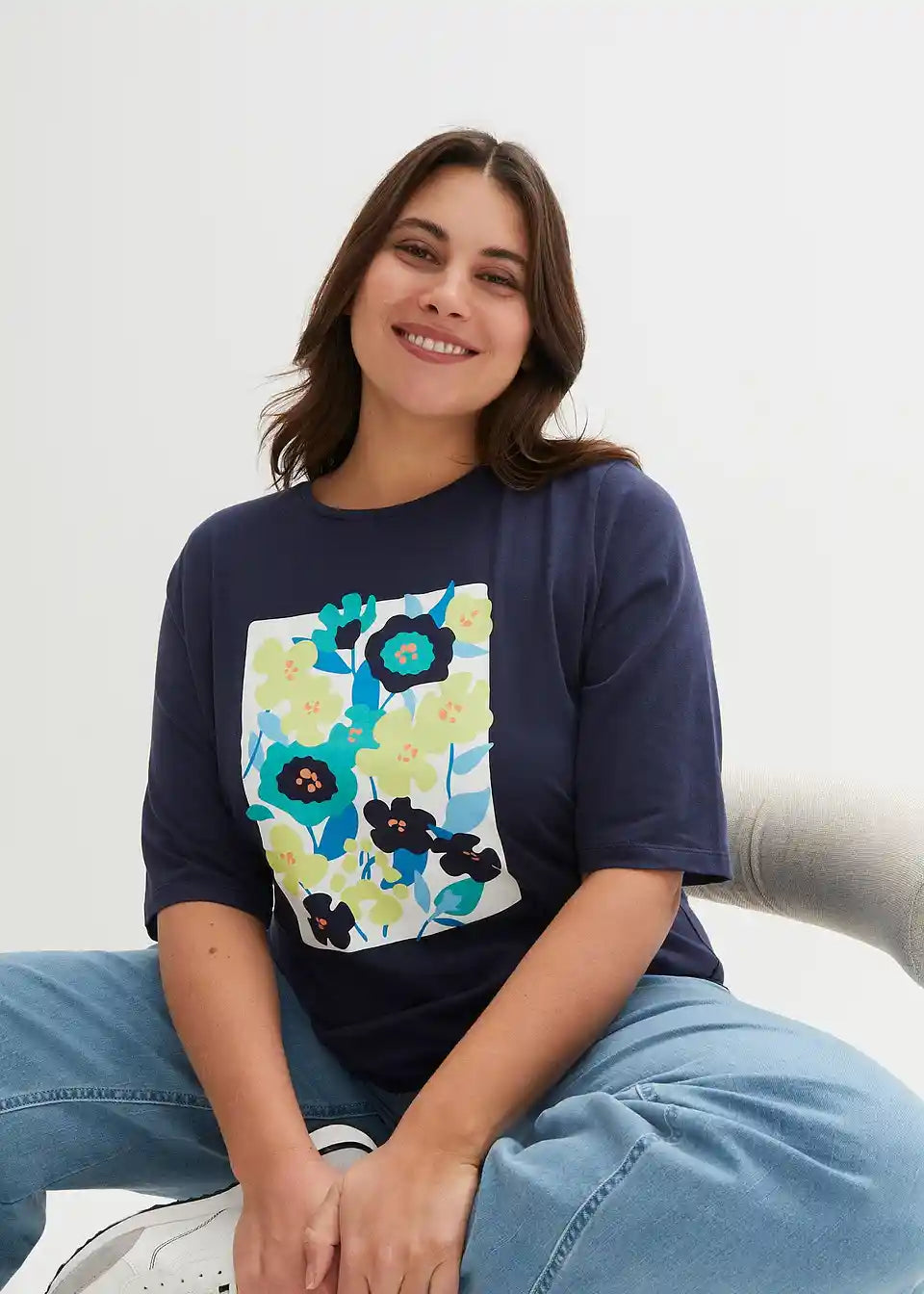 Halbarmshirt mit floralem Druck aus Bio-Baumwolle