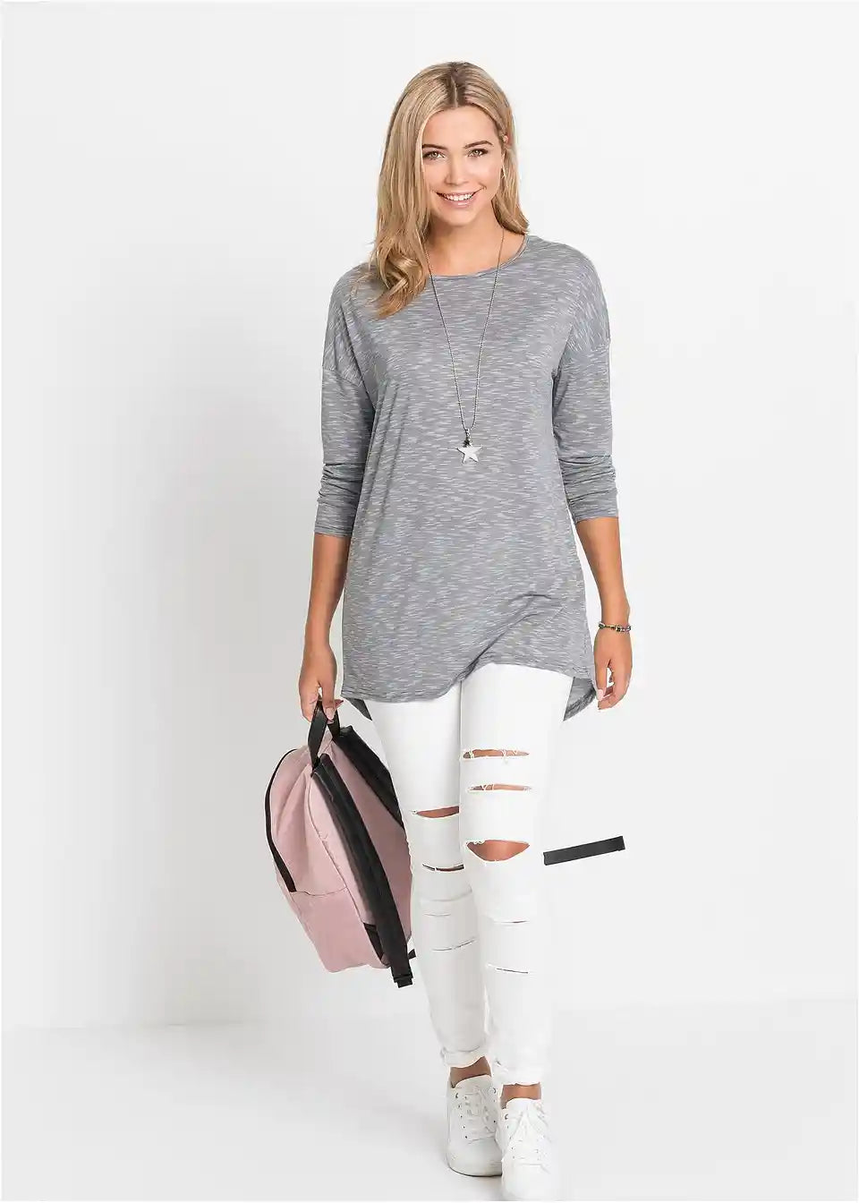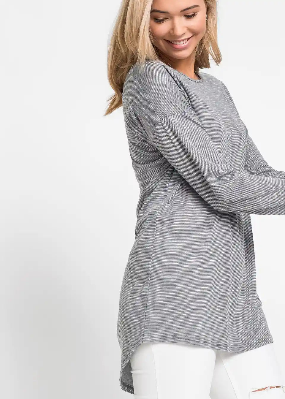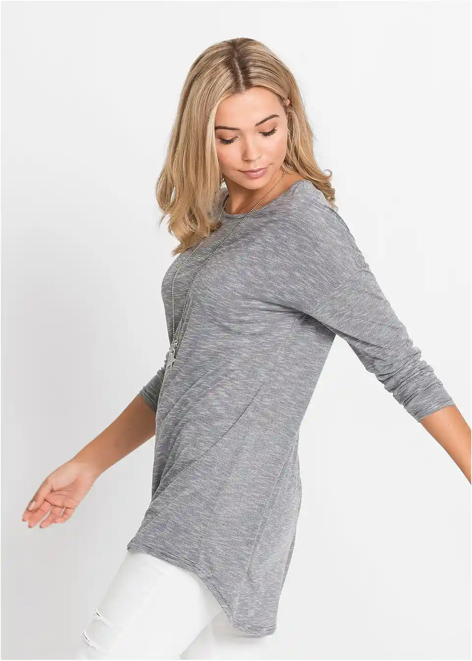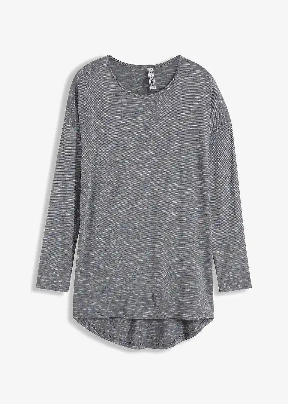 Lässiges Longshirt aus Flammgarn mit rundem Saum
