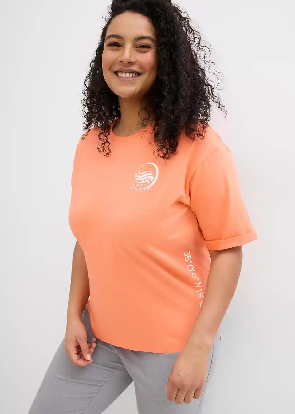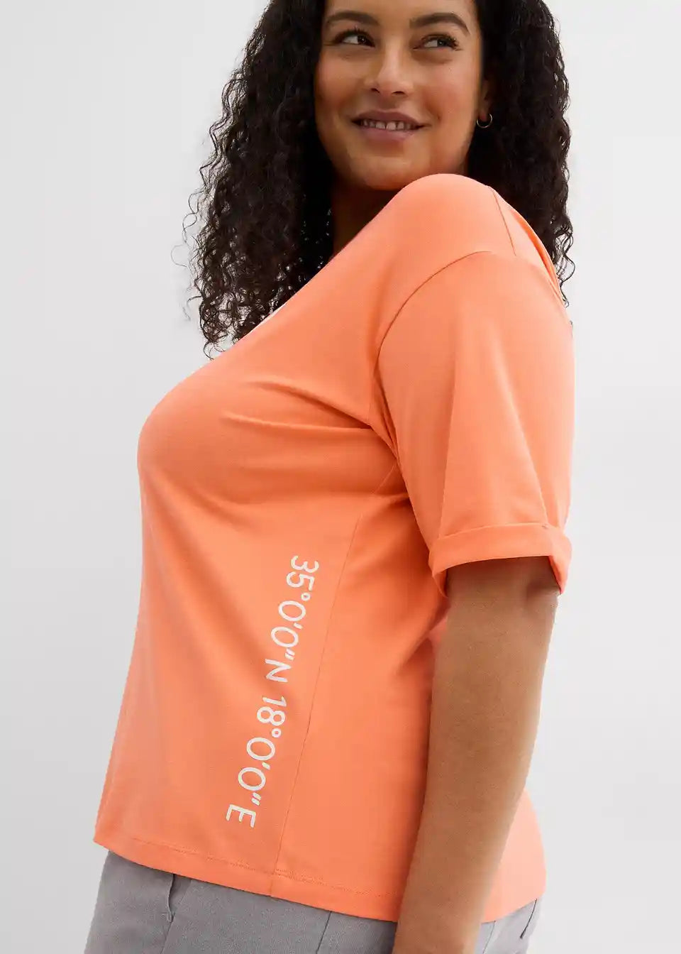 Klassisches T-Shirt mit Druck und einem fixierten Ärmelumschlag