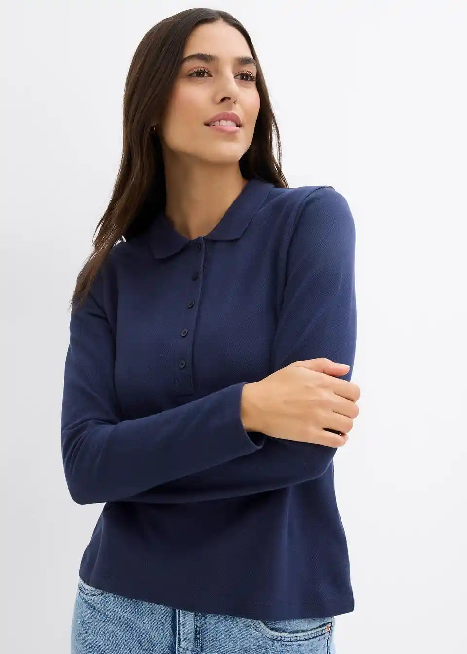 Schönes Piqué-Poloshirt mit langen Ärmeln