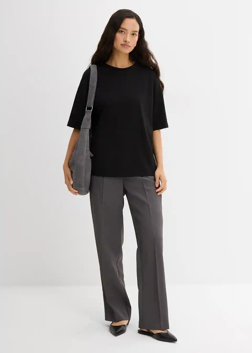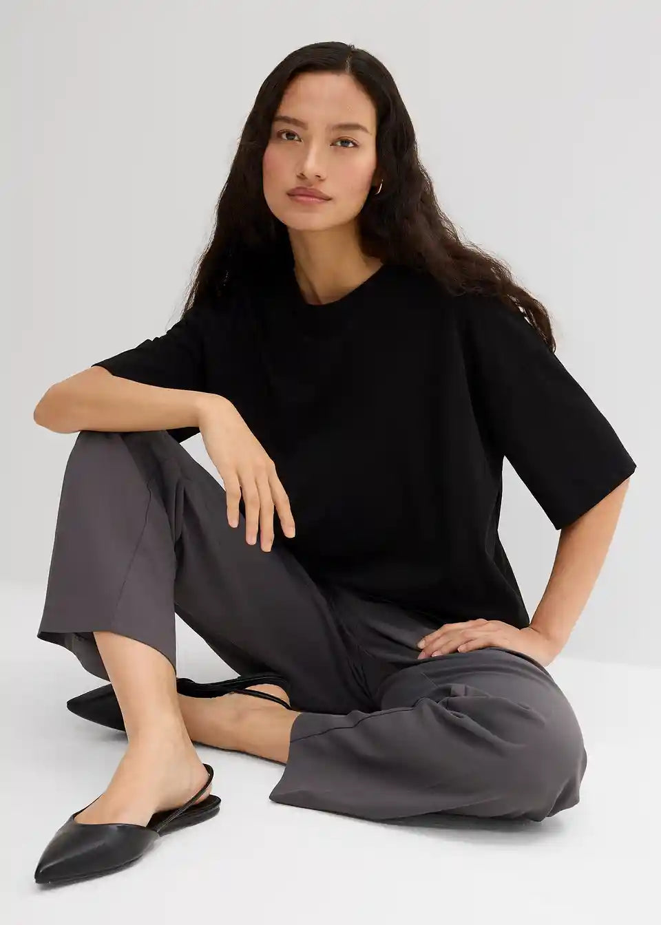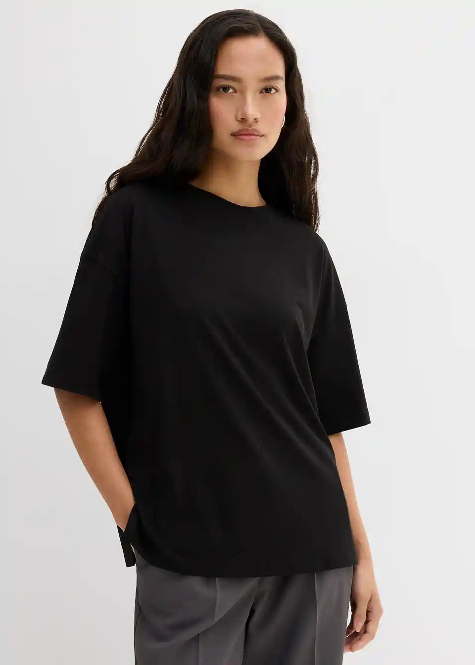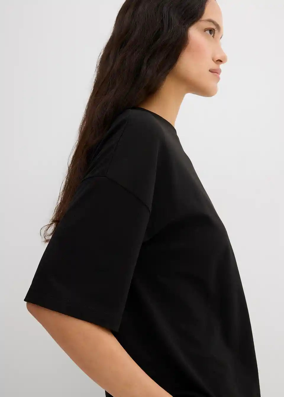 T-Shirt mit lockerer Passform mit einem gerippten Rundhalsausschnitt sowie verlängerten kurzen Ärmel