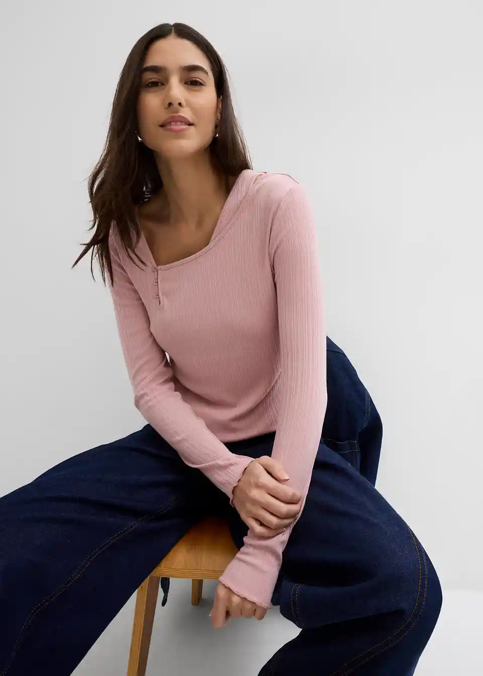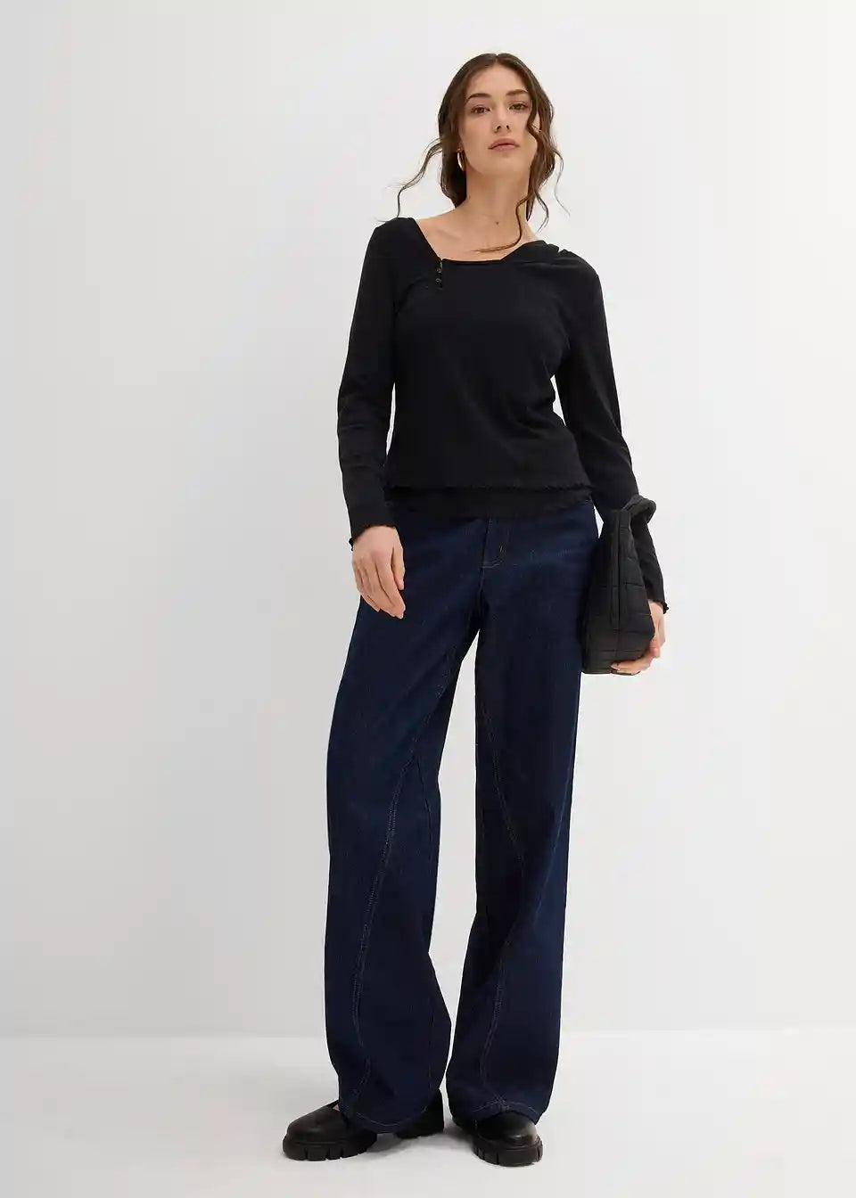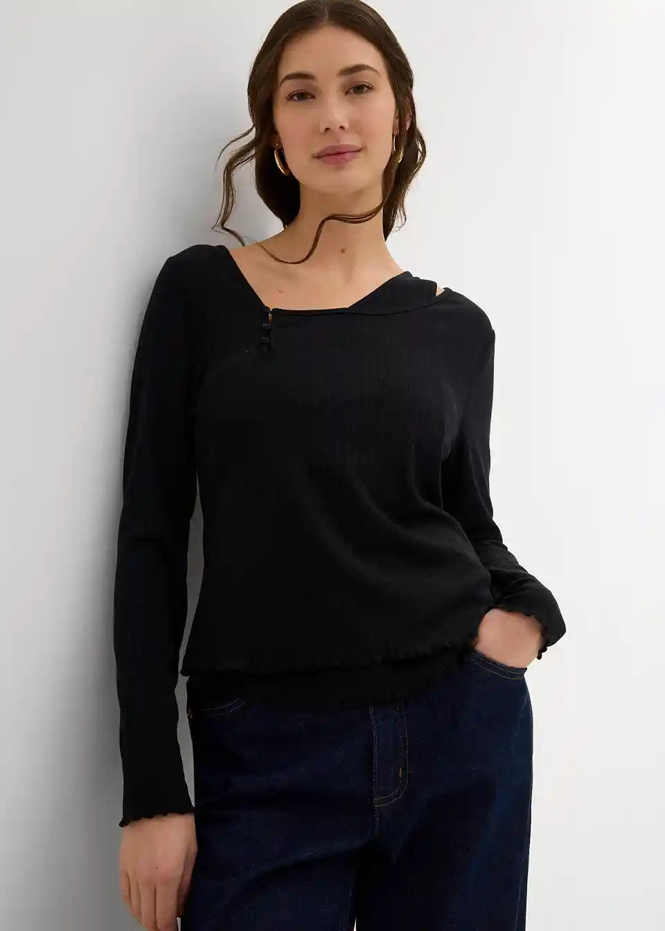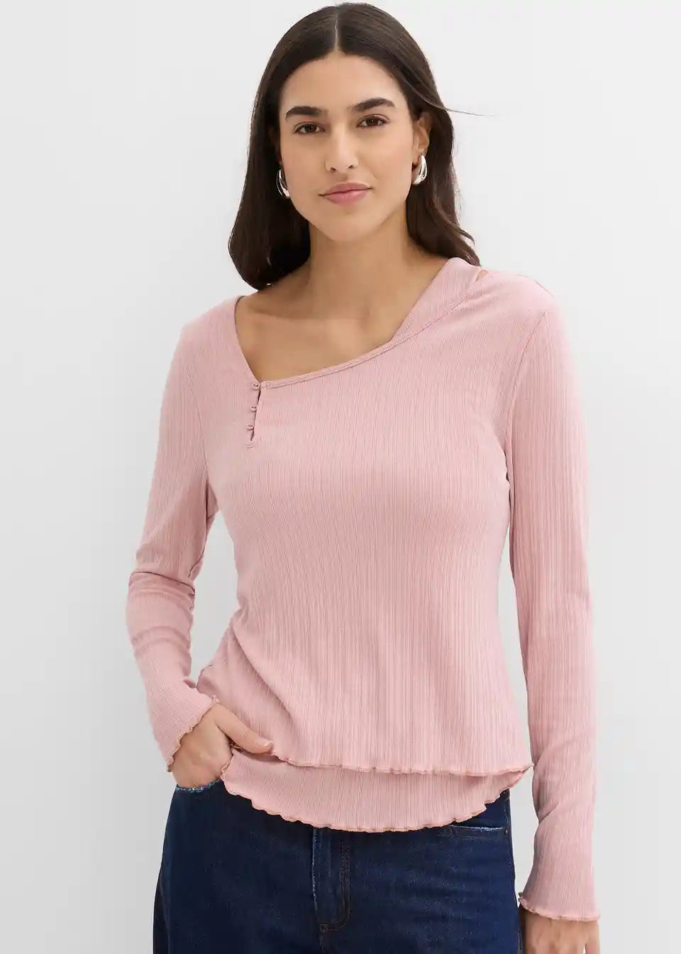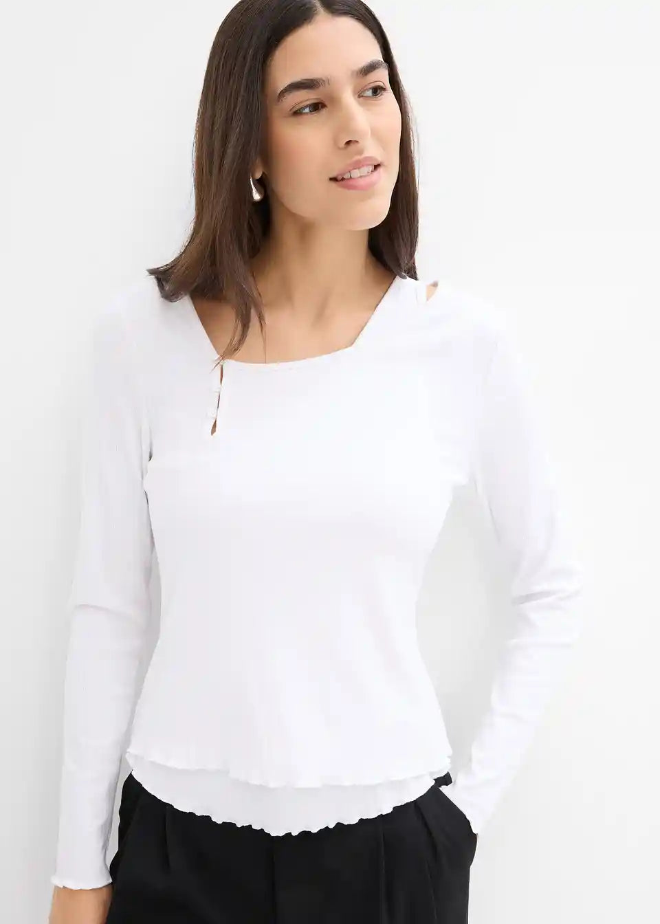 Modernes 2 in 1 Langarmshirt mit asymmetrischem Ausschnitt