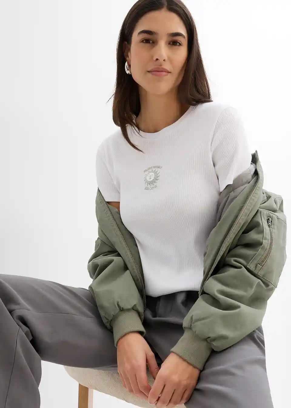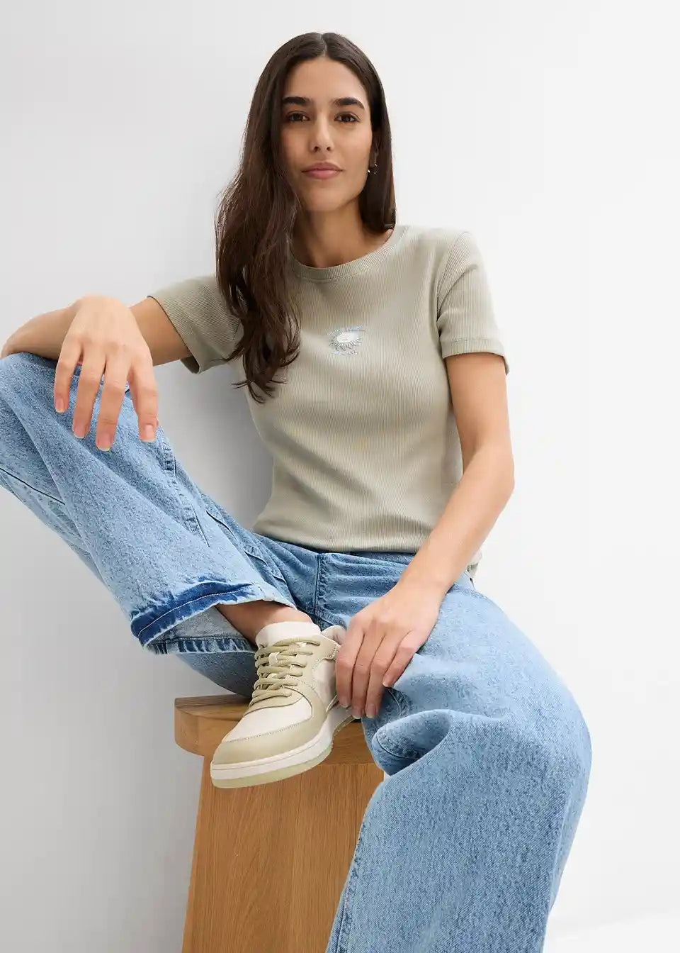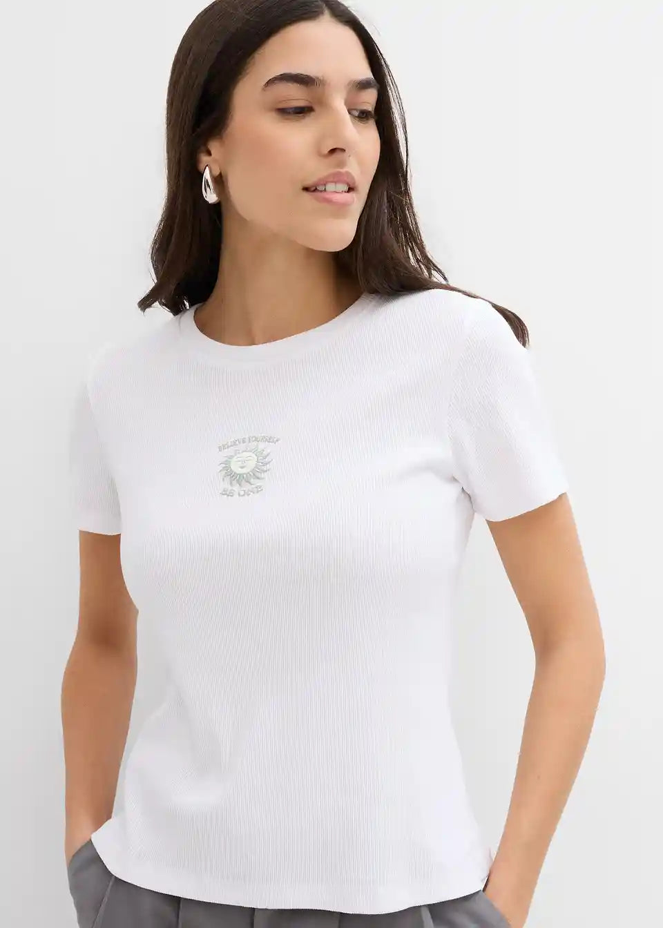Modisches Ripp-T-Shirt mit Aufdruck