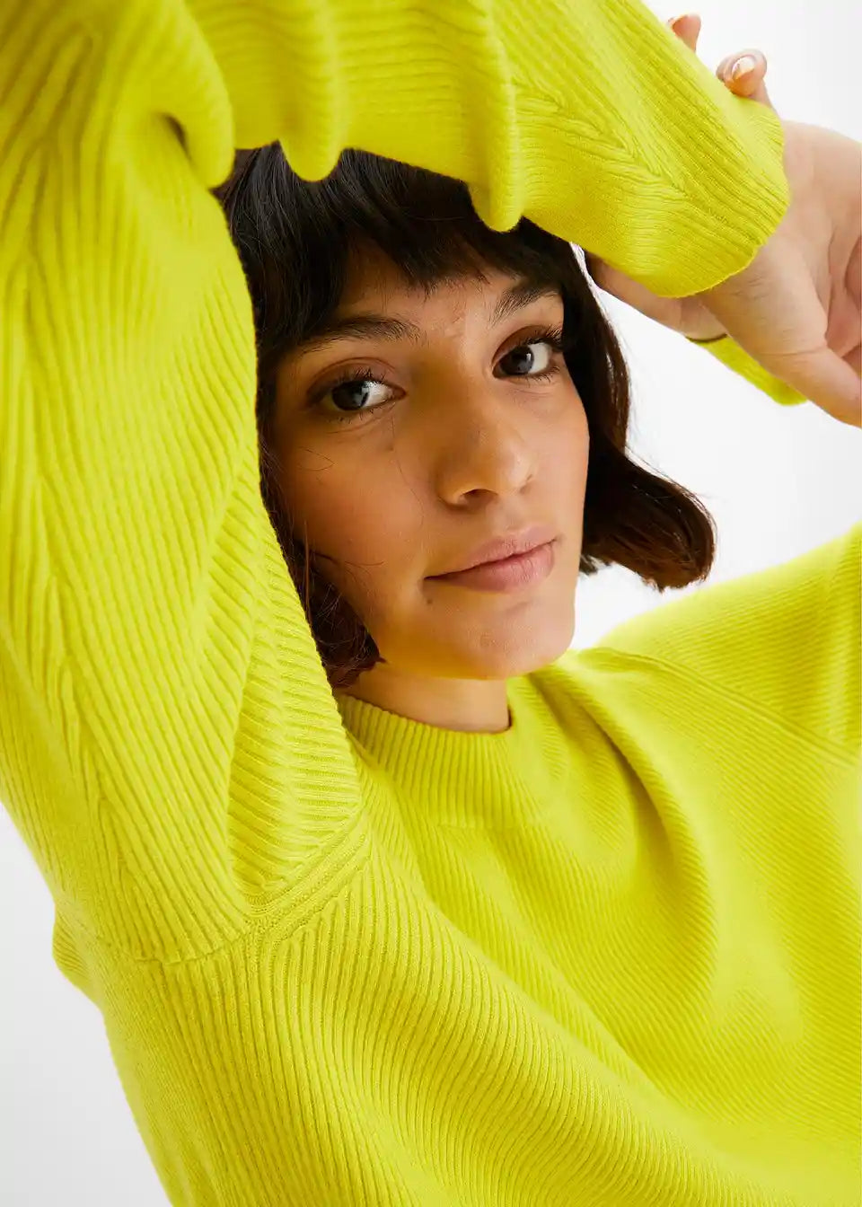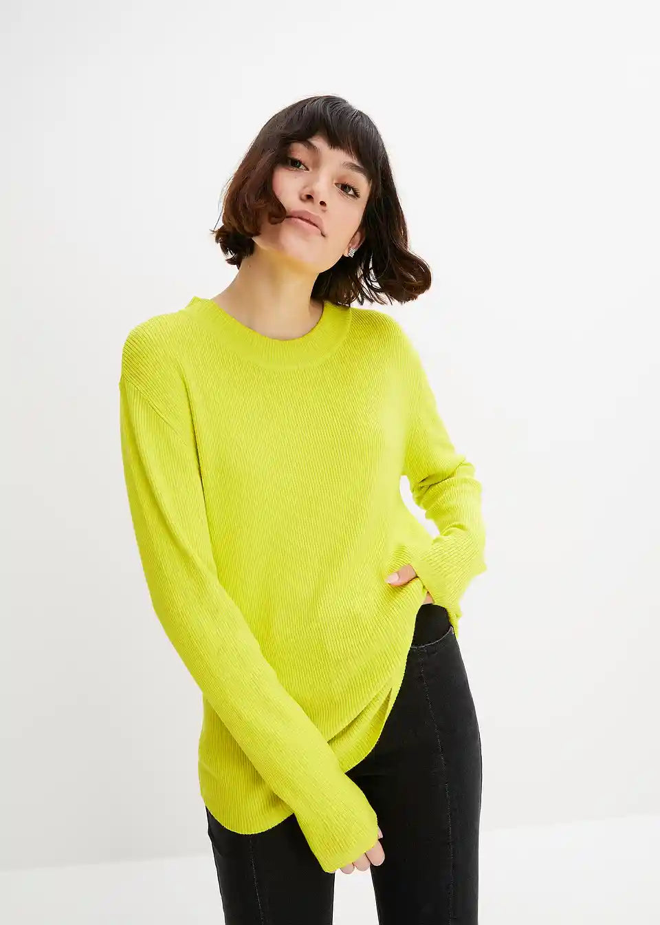 Hochgeschlossener Rippstrickpullover aus softer Viskose