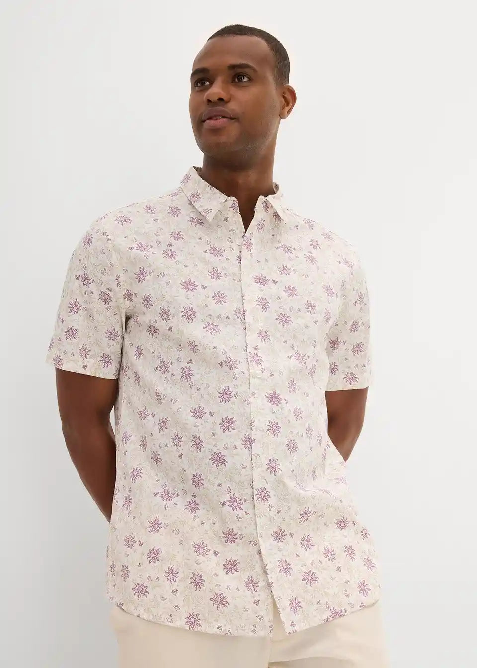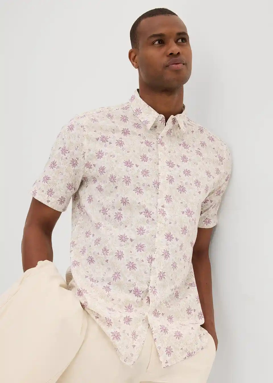 geblümtes Kurzarmhemd aus reiner Bio-Baumwolle