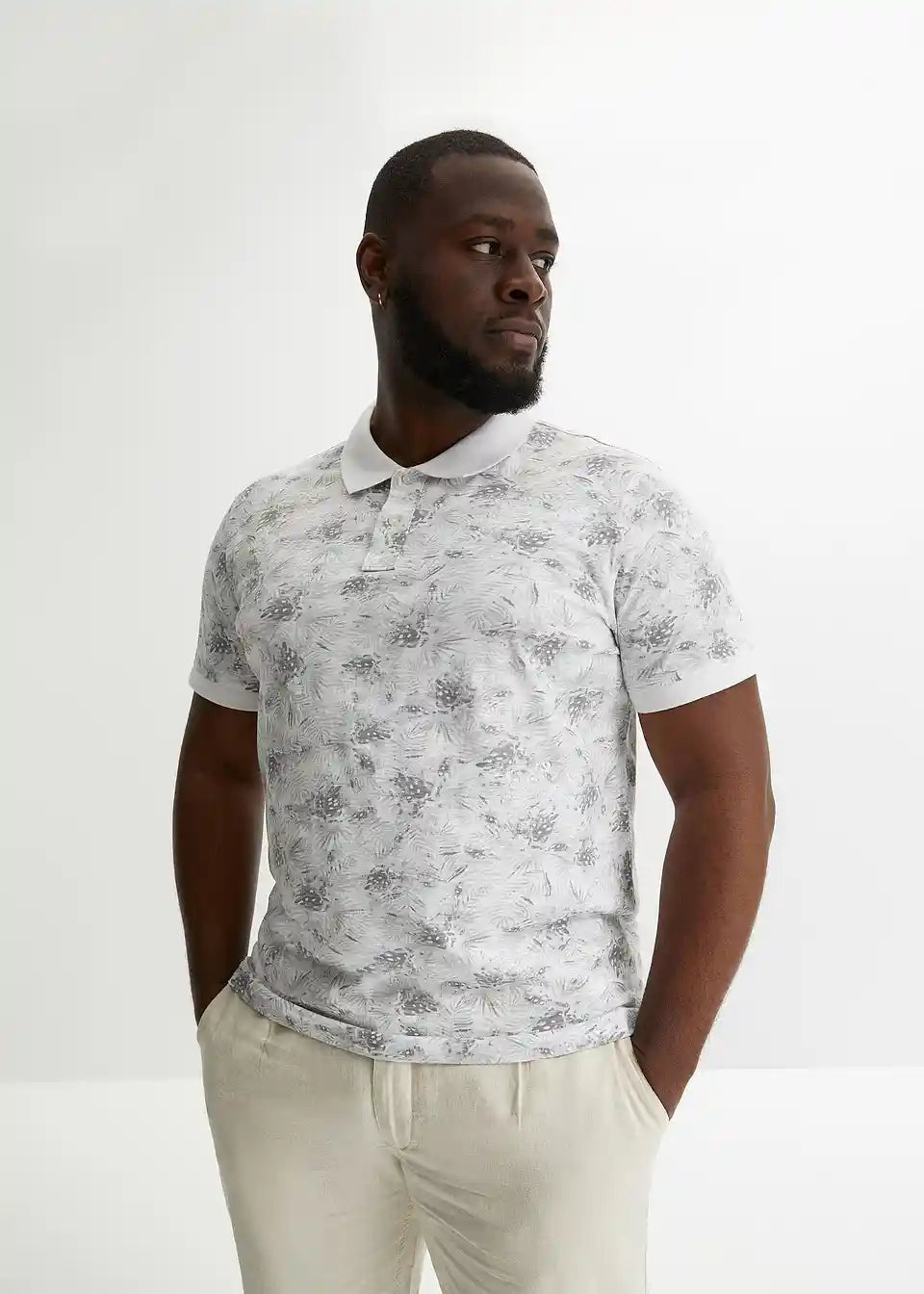 Schönes Poloshirt mit floralem Muster aus Leinen