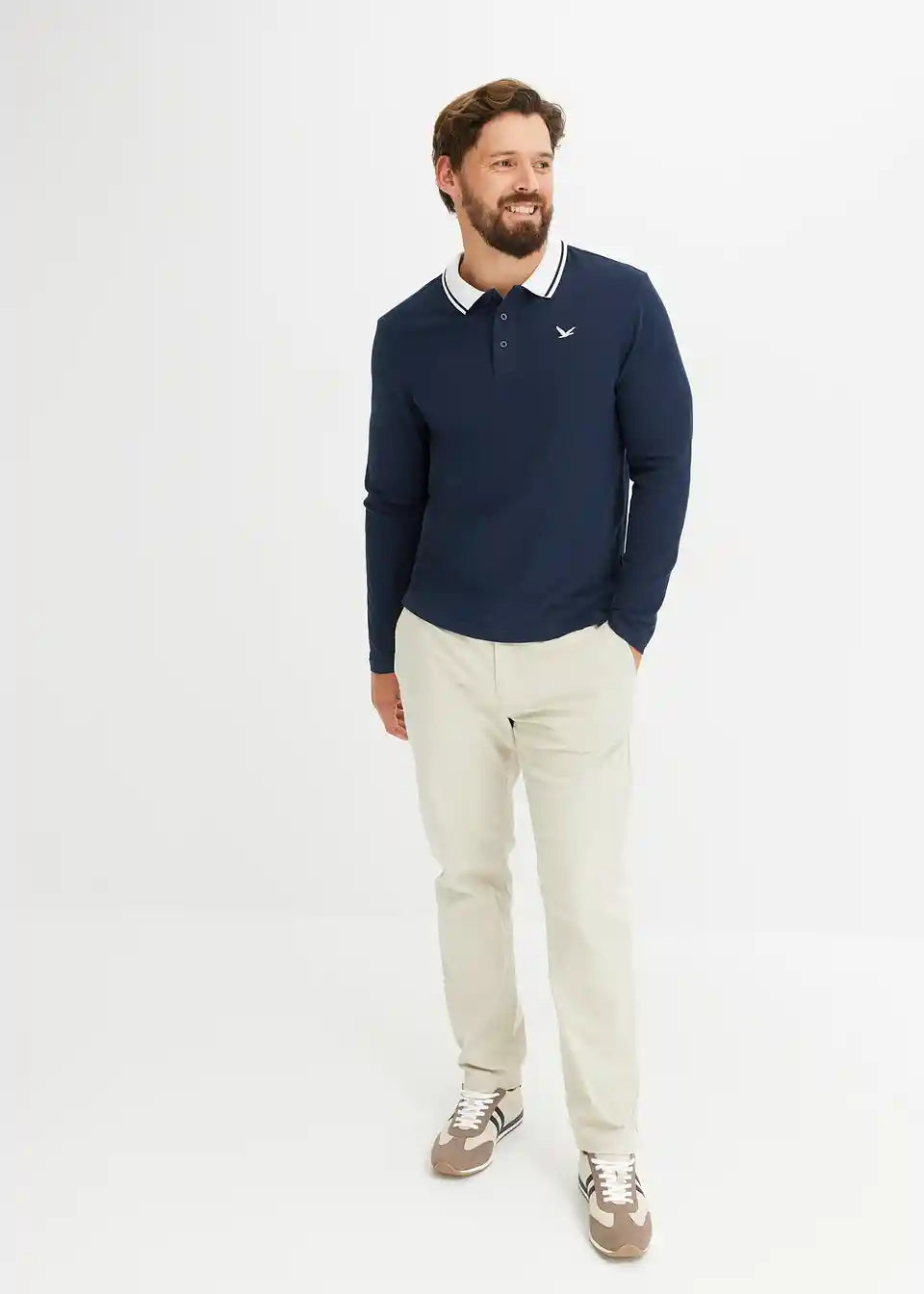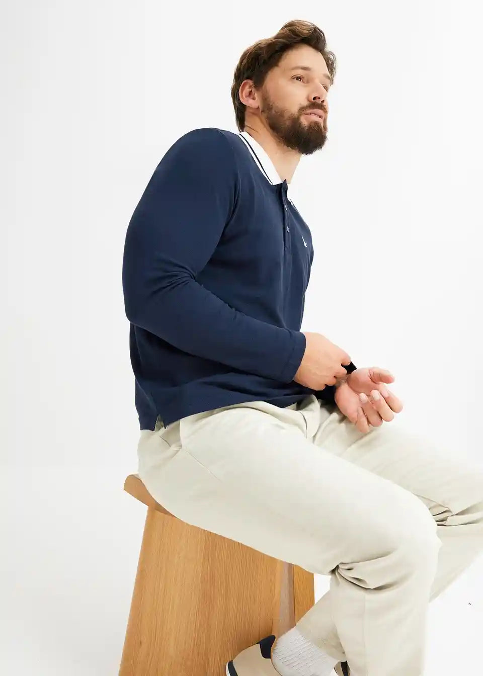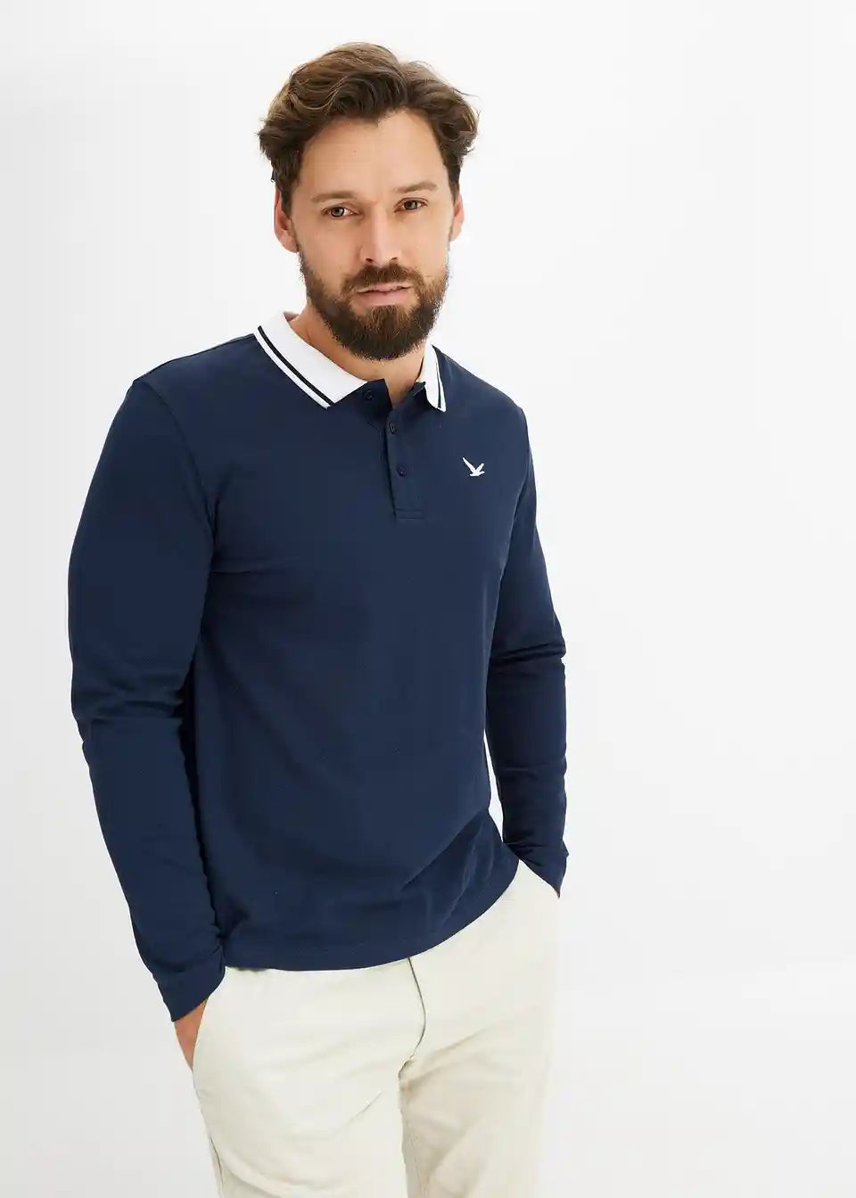modernes Poloshirt mit langen Ärmeln in Piqué-Qualität