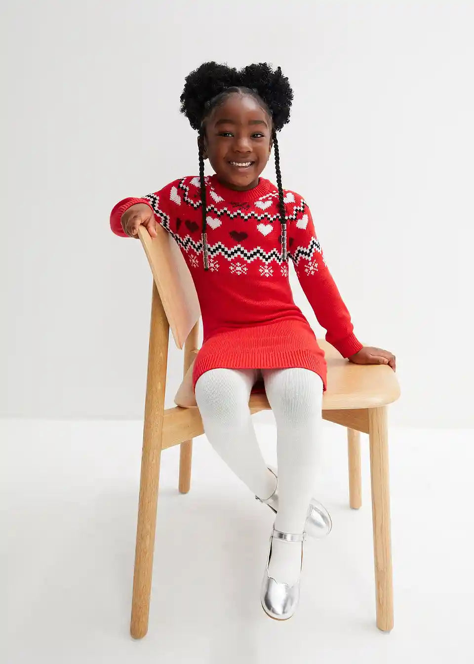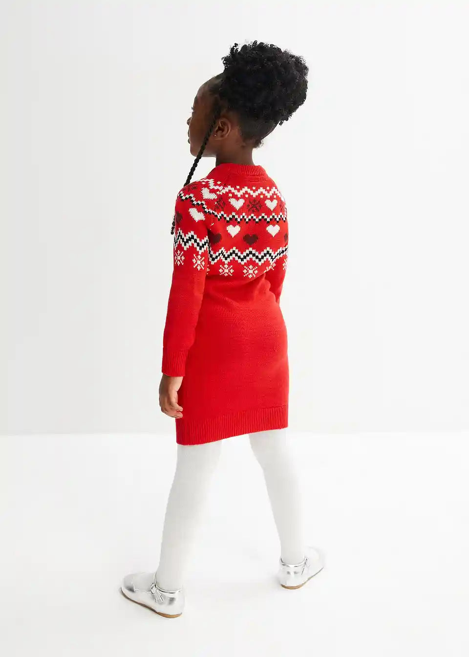 Schönes Mädchen Strickkleid mit Norwegermuster