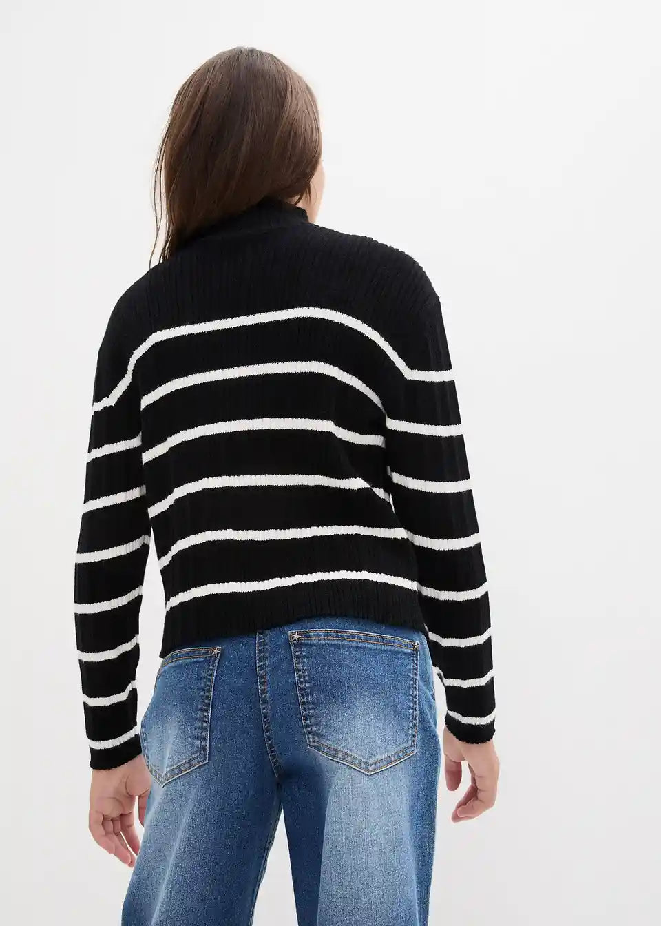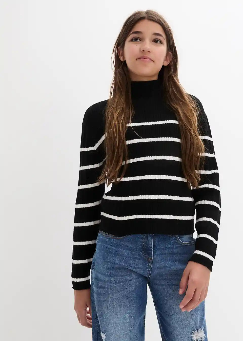 Modischer Mädchen Rippen-Strickpullover mit hohem Kragen