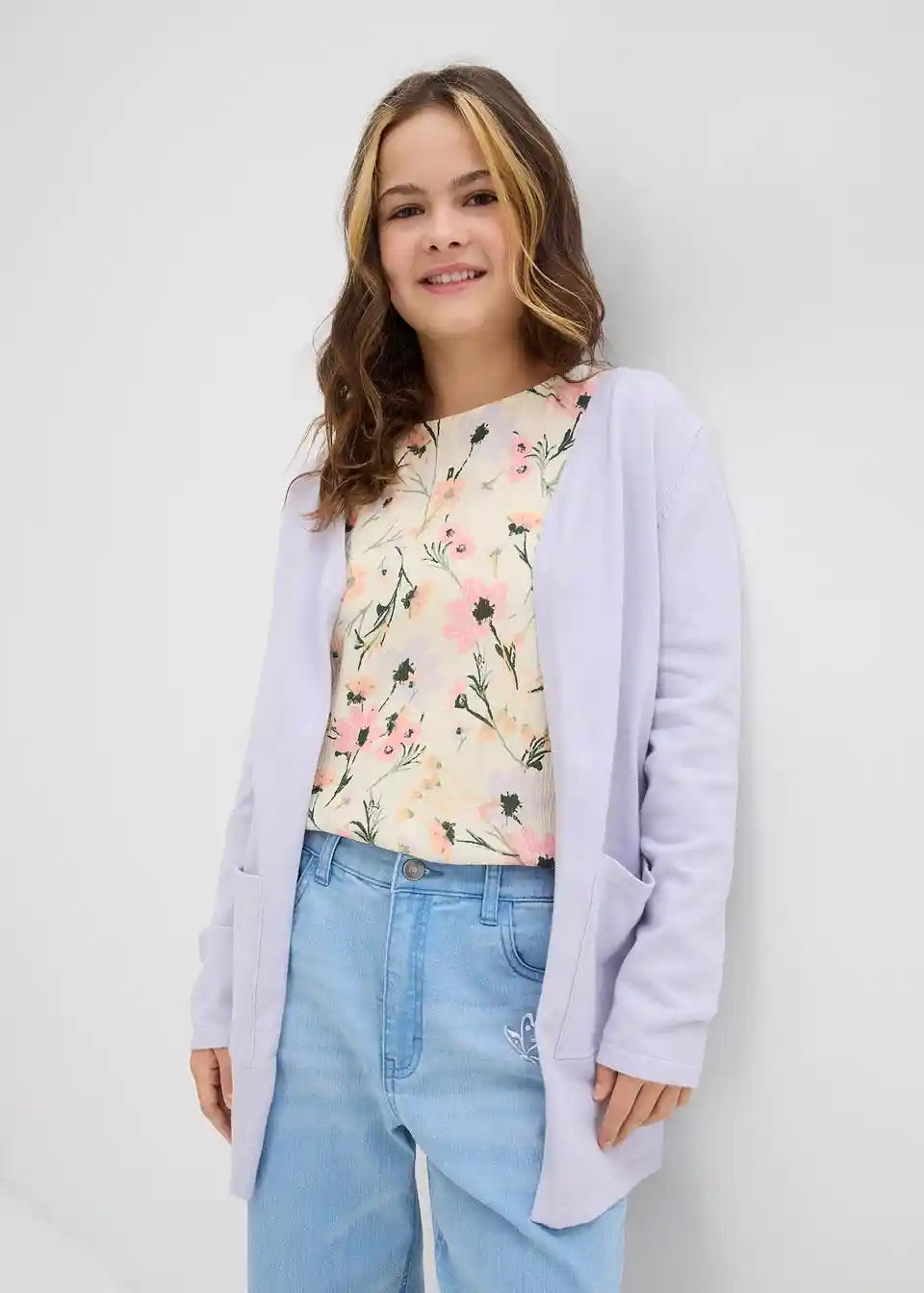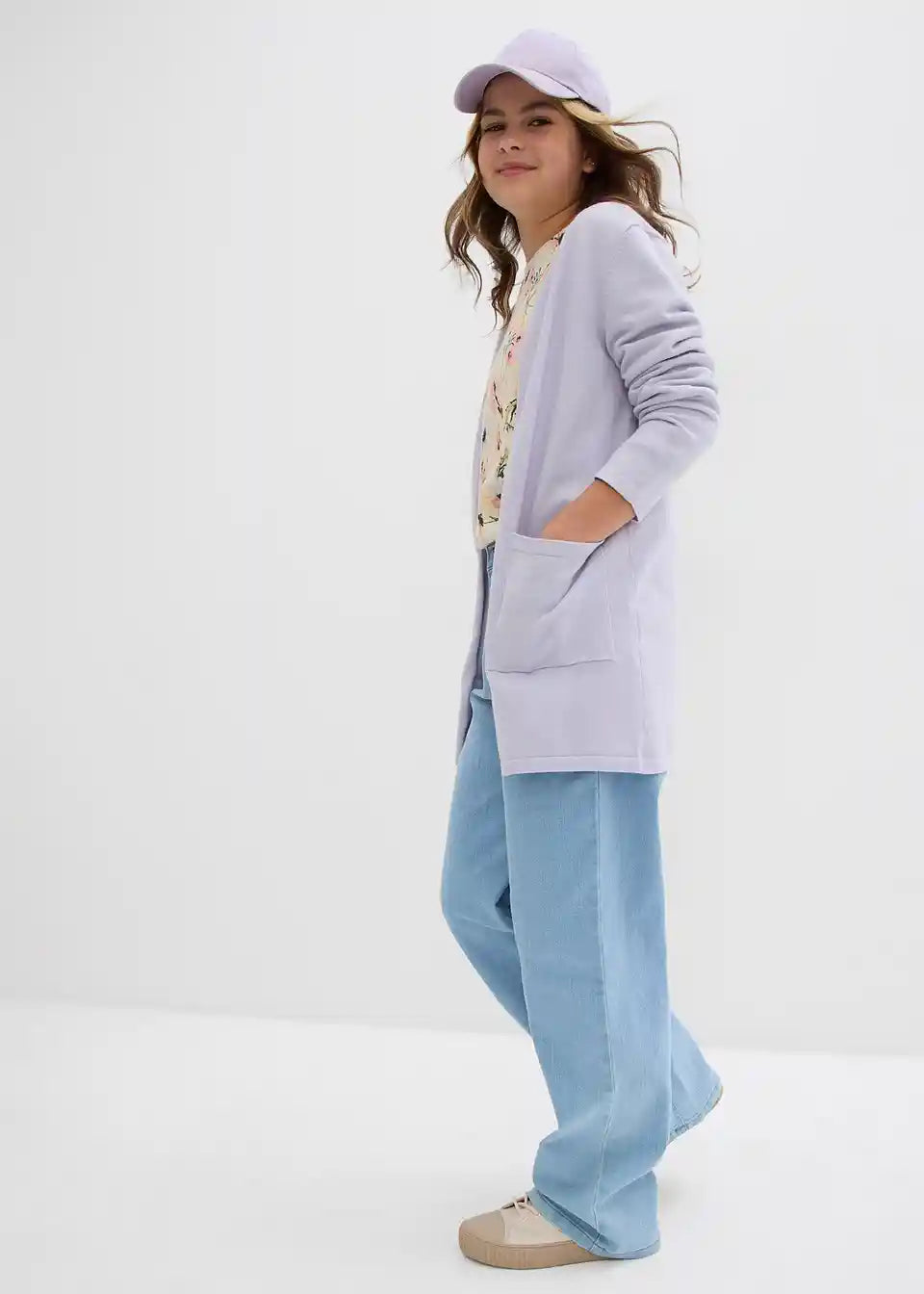 Schöne Mädchen Longstrickjacke mit aufgesetzten Taschen