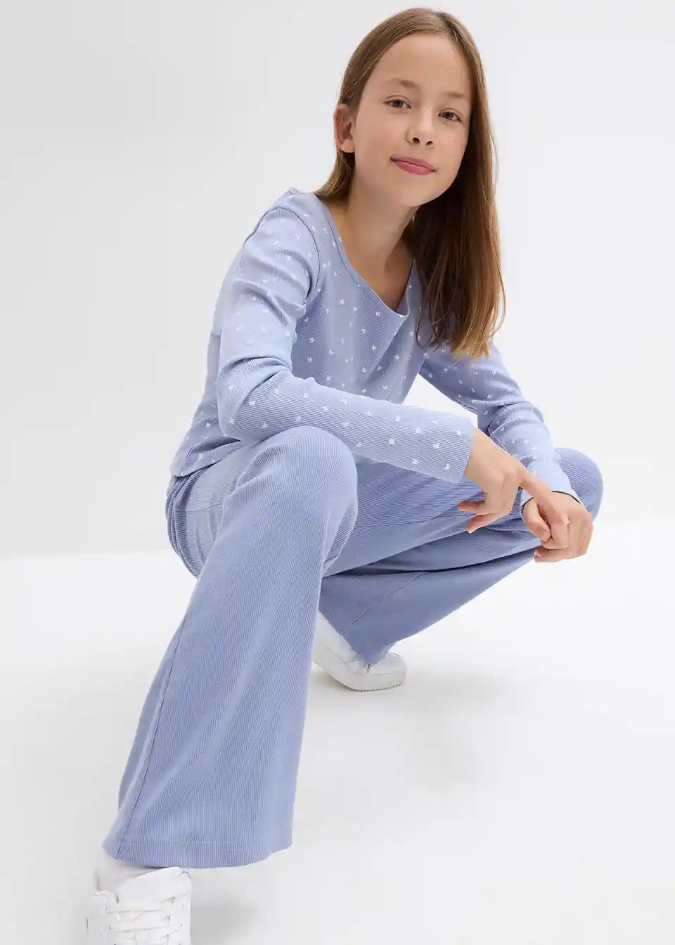 Gerippte Mädchen Jersey-Hose mit ausgestelltem Bein