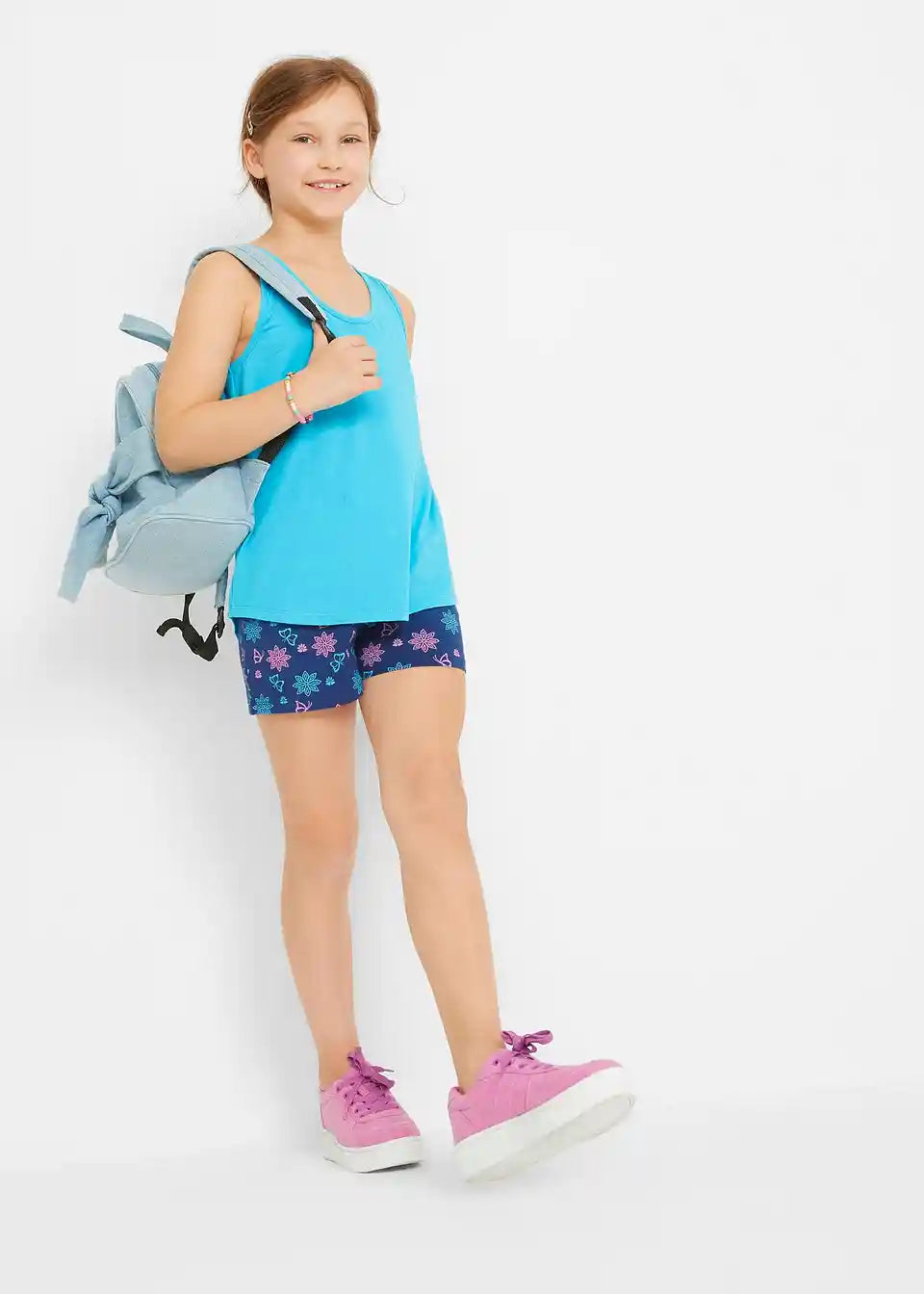 Shorts im 2er- Pack für Mädchen. Eine Short in unifarben und eine mit Muster, ideal für die warmen Sommertage.