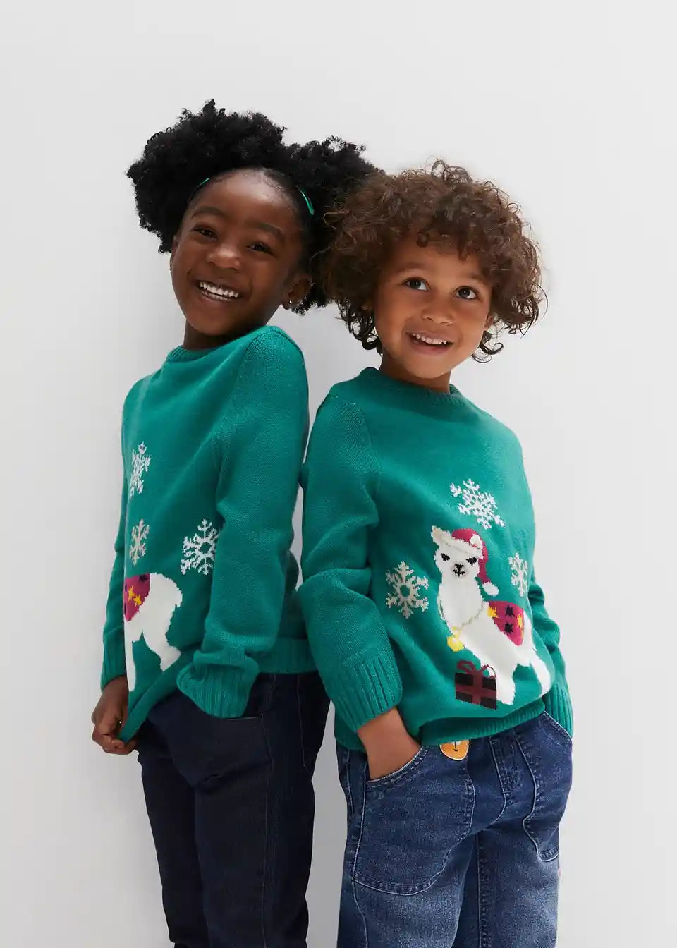 Lässiger Kinder Strickpullover mit Weihnachtsmotiv
