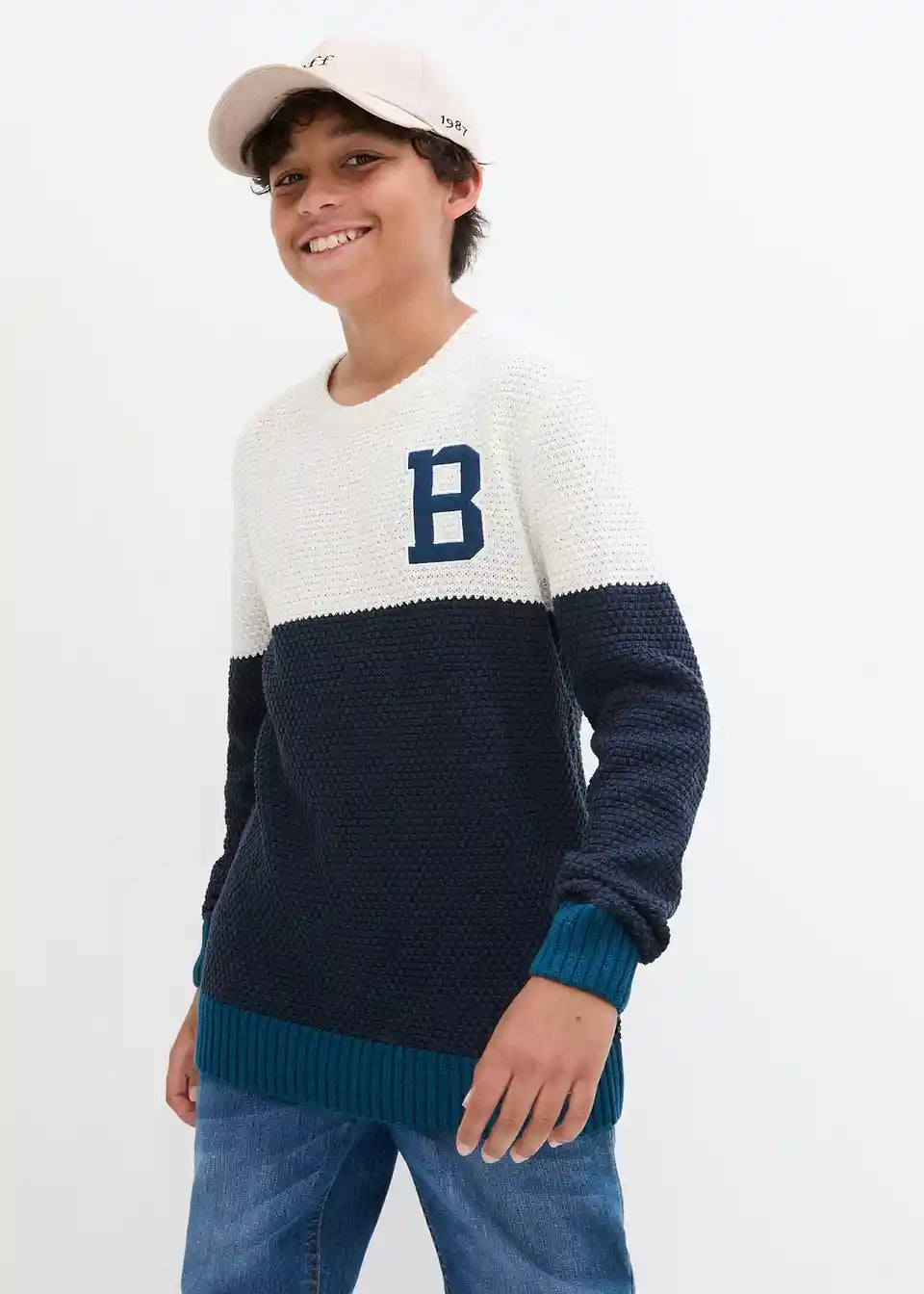 Angesagter Pullover mit Rundhalsausschnitt und Applikation auf der Brust