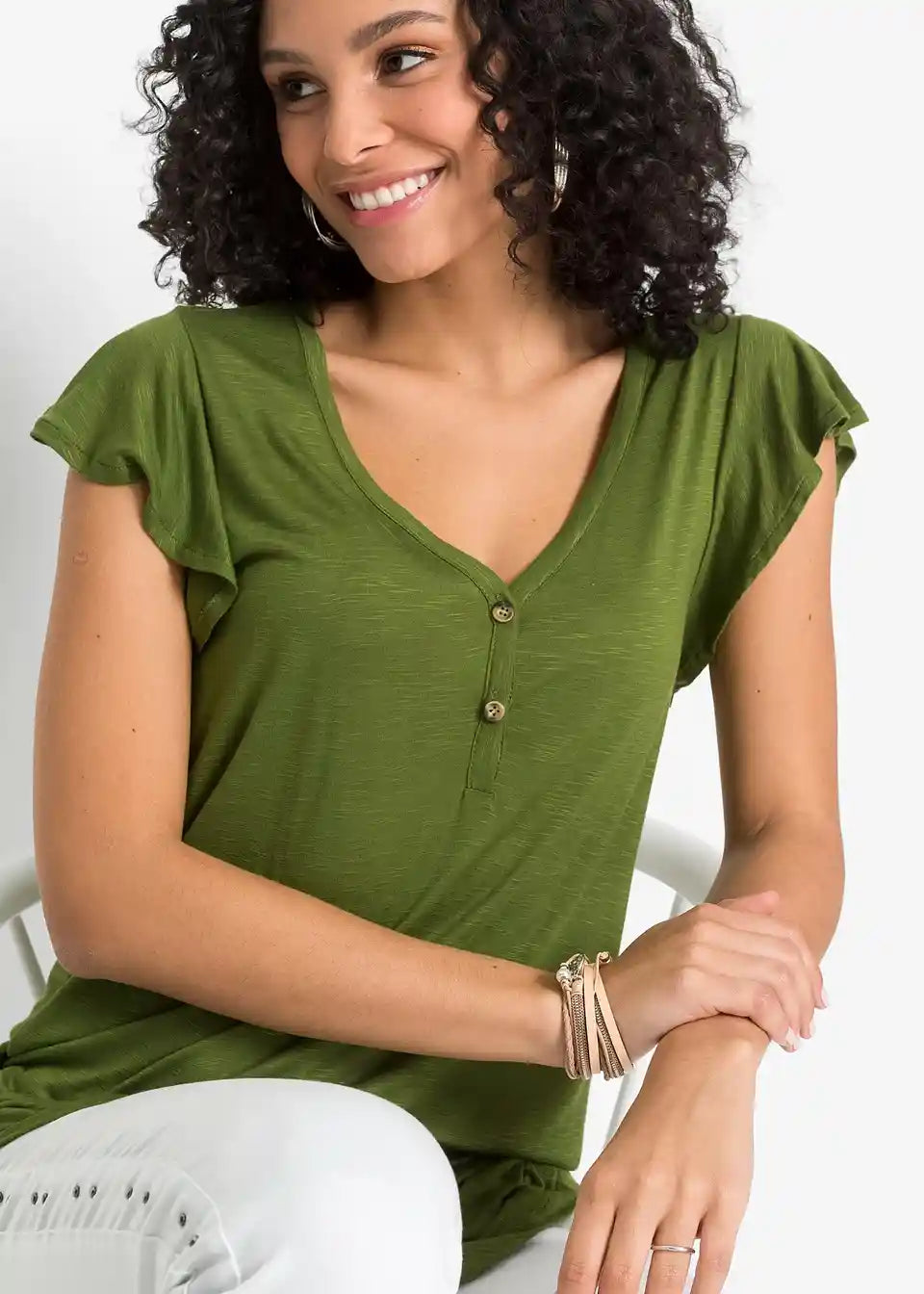 Luftiges Shirt mit Flügelärmeln und dekorativem Ausschnitt