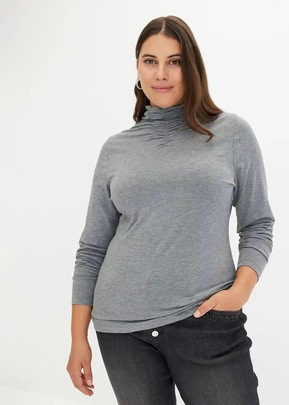 modisches Langarmshirt mit gerafftem Stehkragen