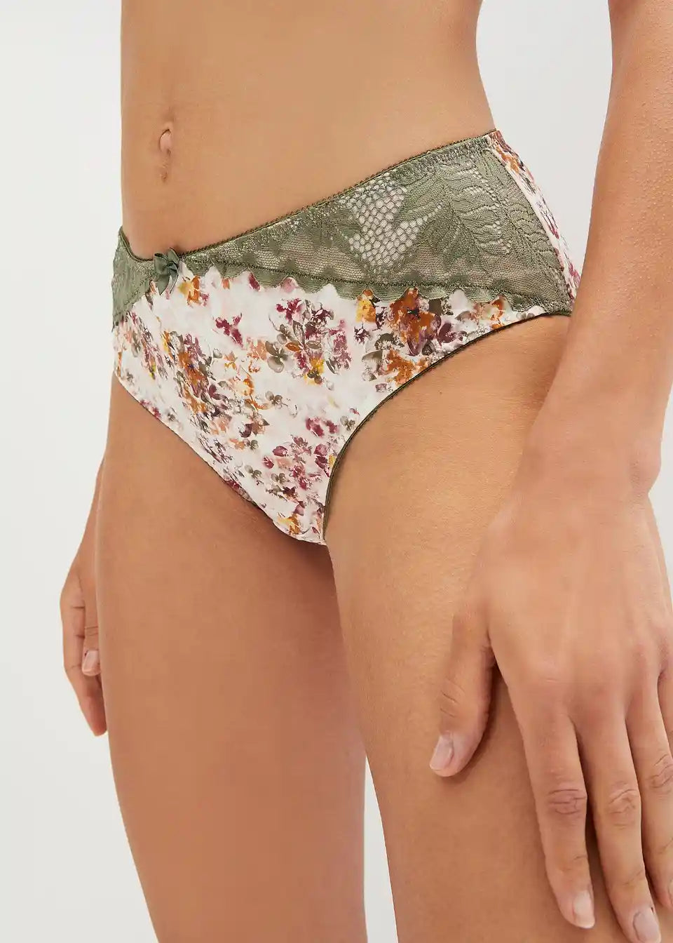 floral bedruckter Slip mit zarter Spitze
