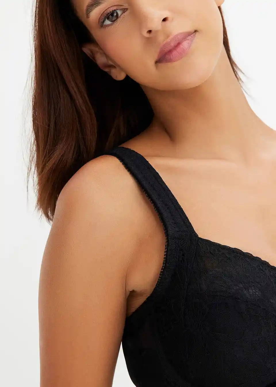 Material:Obermaterial: 80% Polyamid (recycelt), 20% Elasthan, Spitze: 76% Polyamid (recycelt), 12% Elasthan, 12% Polyamid, Netzfutter: 85% Polyamid, 15% Elasthan