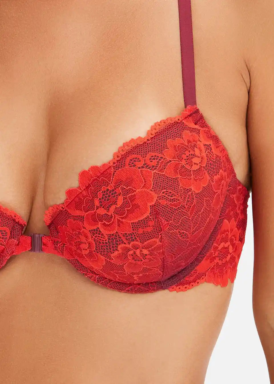 Dieser schöne Schalen-BH ist super praktisch mit einem Vorderverschluss zu öffnen. Ein ganz besonderer Hingucker ist der tolle Farbverlauf der Spitze wodurch jeder BH zu einem Unikat wird.