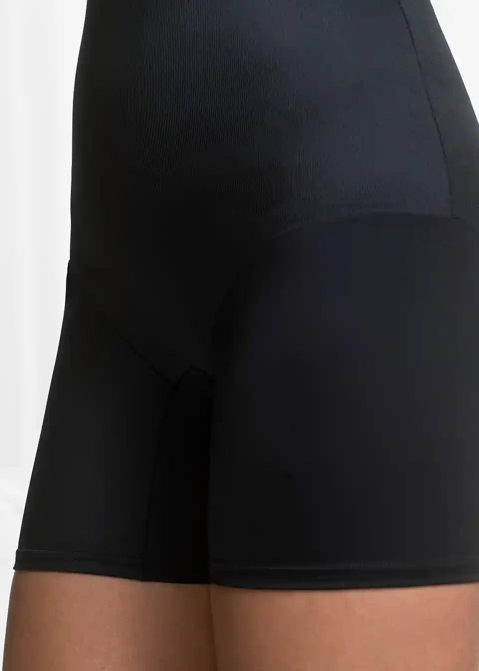 Das spezielle und blickdichte Material dieser Shape Hose von Nice Size sorgt für eine attraktive und weibliche Silhouette.Die Hose formt ansprechend den Bauch und den Hüftbereich. An den Beinen ist die Hose aus weicher Qualität gearbeitet, die einen angenehmen Tragekomfort bietet. Das Bein fällt bei der Radler mit mittlerem Formeffekt in großen Größen länger aus.Zusätzlich wird das Aneinanderscheuern der Beine verhindert.