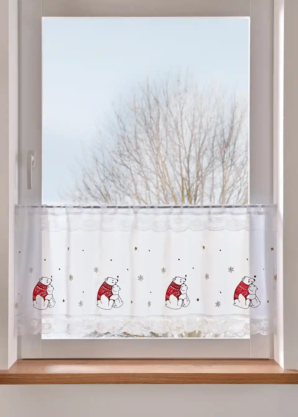 Küchengardine mit winterlich bestickten Eisbären sorgt für Weihnachtsstimmung