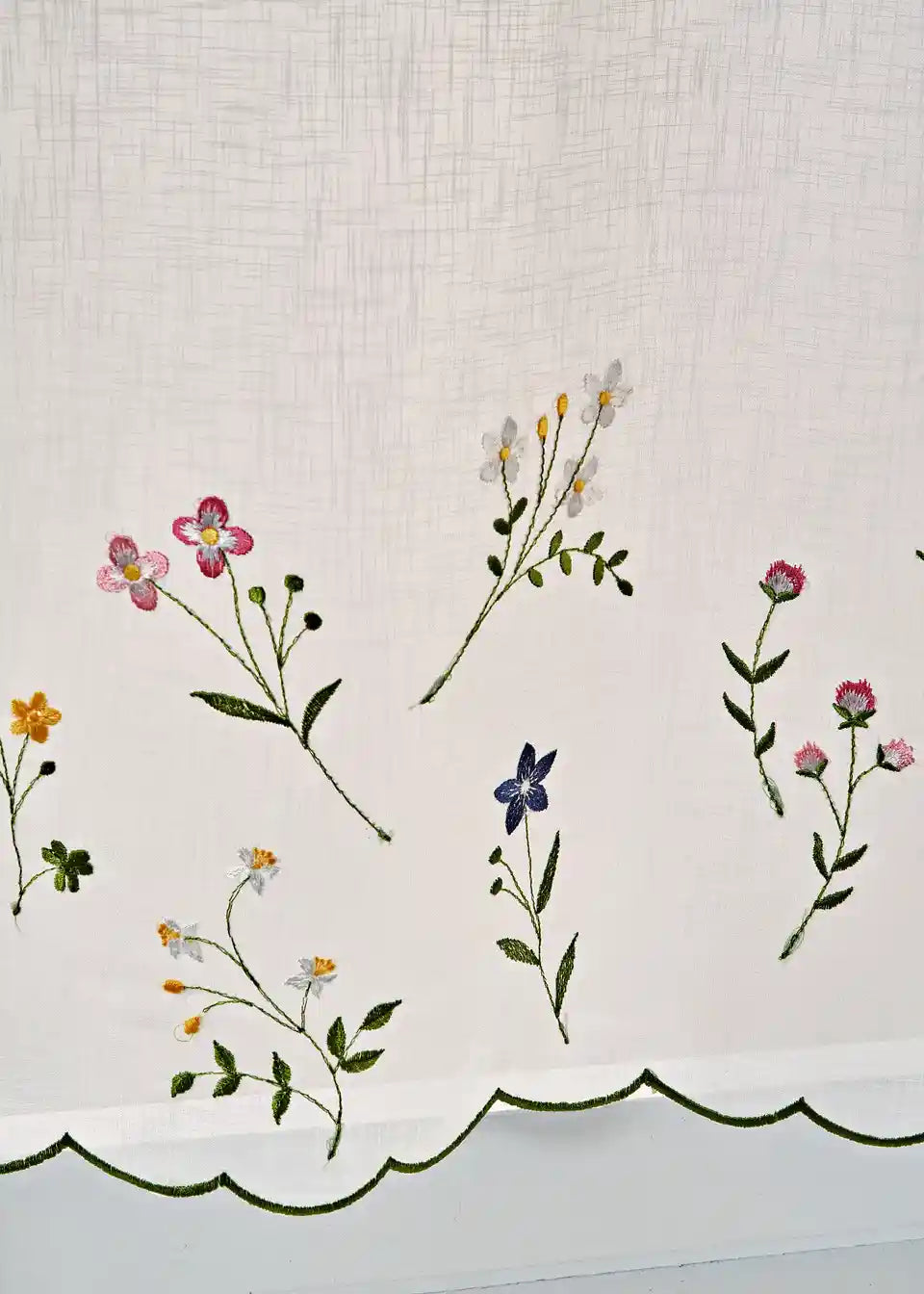 Küchengardine mit Blumen Stickerei